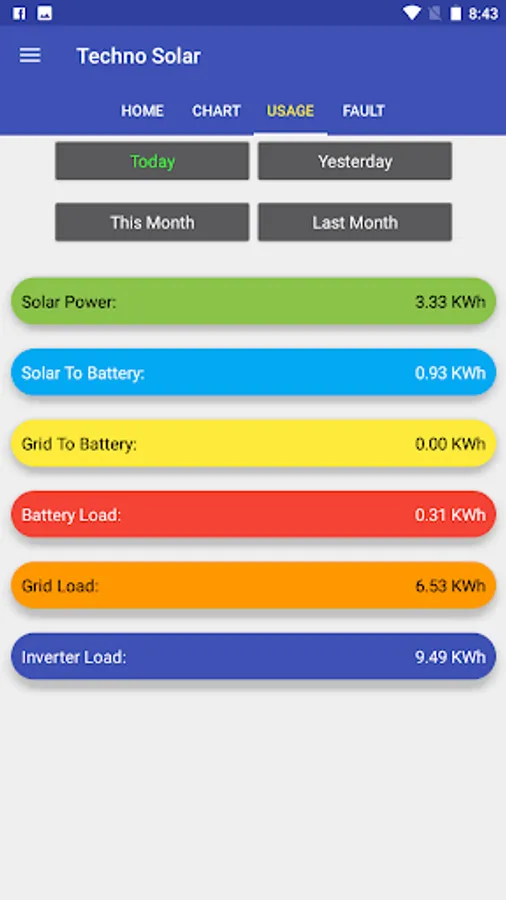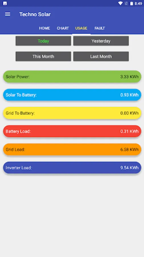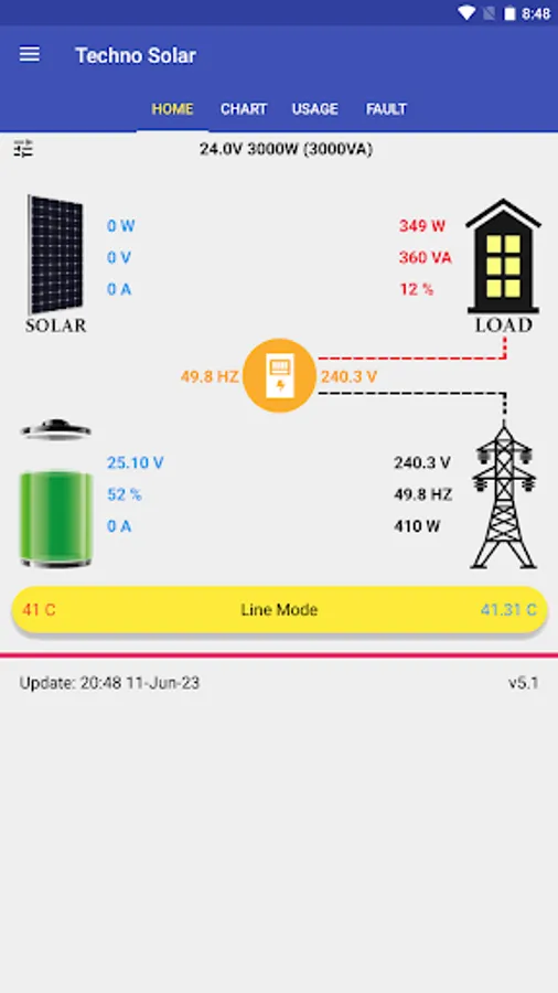 Techno Solar App for monitoring solar inverters online, this app only work with its device. App Support Inverter Current Statistics, Chart History, iSetting, Inverter Working Mode, Buzzer Alert, Inverter Fault, Usage Details