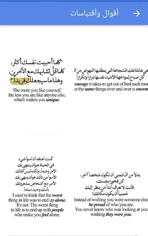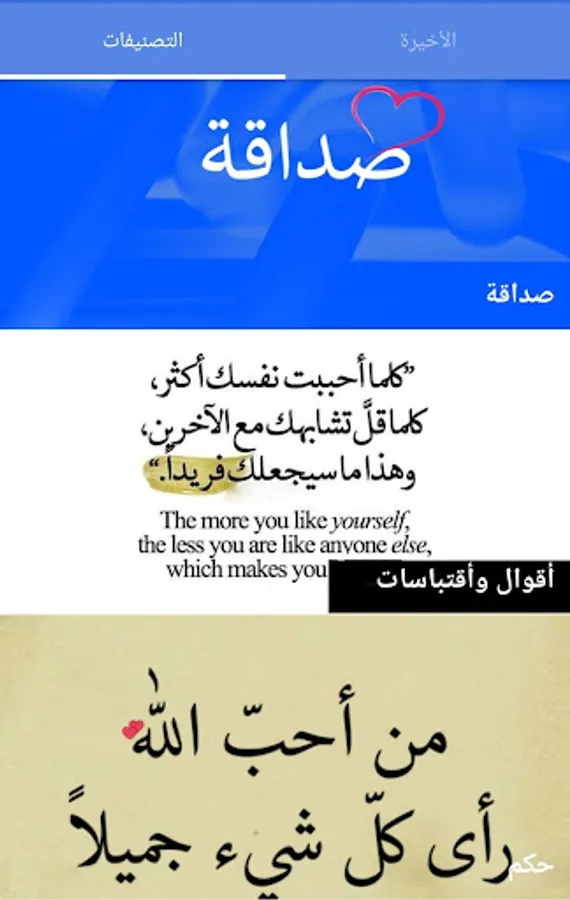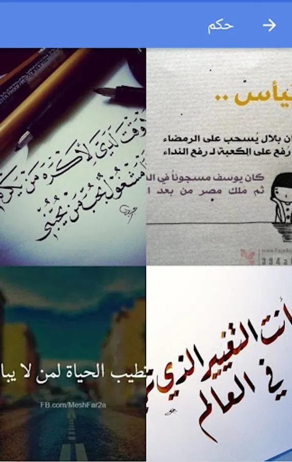 It offers the best and newest pictures, wisdom and sayings in Arabic and English, publications and posts for Facebook, WhatsApp cases and all social media sites to spread love between friends, loved ones and brothers, you can easily save pictures in your phone and publish them where you want it all in one application only