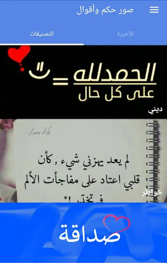 - Sections of the application "judgment, sayings and quotes, Islamic religious publications, publications and pictures on friendship, publications and pictures on thoughts, pictures of beautiful poetry and many sections that we will add, including comentas pictures, comic pictures, cartoon pictures, a special section with pictures of love and lovers, and Misc, And he laughed and laughed