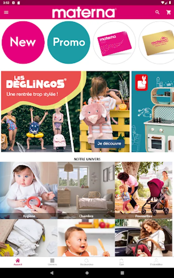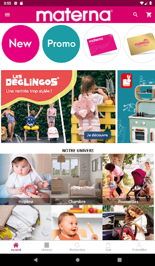 All the childcare offer of materna stores for your baby and even more: birth list, bedroom, strollers, car seats, accessories ...