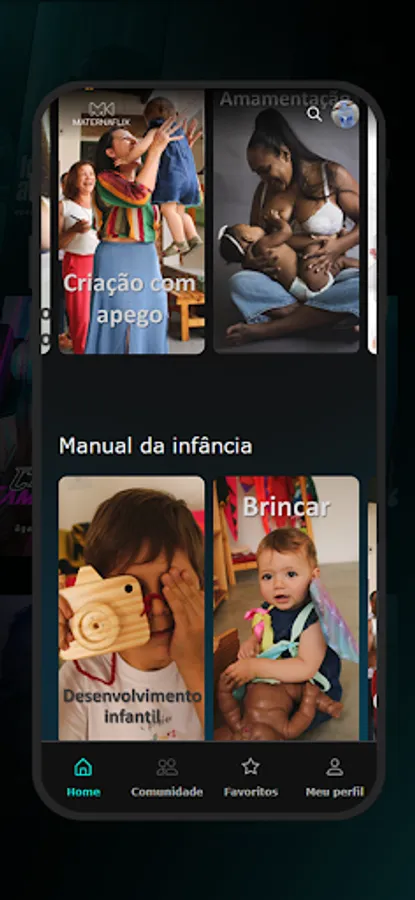 MaternaFlix is a platform made by health and wellness professionals to support and guide mothers and families through their journey into motherhood. It has subtitled videos, communities and access to humanized professionals. Everything you need for your family's well-being.