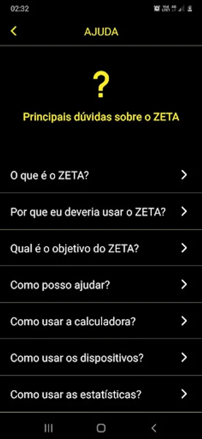 ZETA - protótipo Screenshots