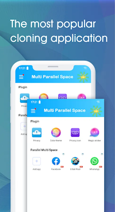 - Click the "+" button in the Multi Parallel Space app to add the app you want to clone, then click the app's icon to run it.