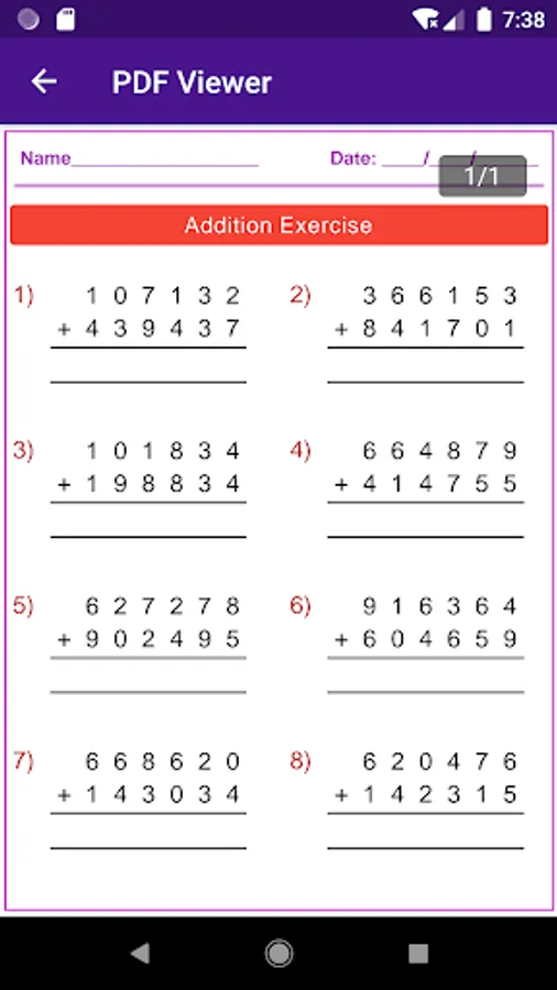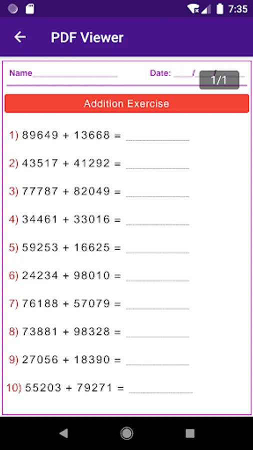 This app solve addition sums in long method or column method. This app solve sums upto five addends. This app also designed to generate addition worksheets in printable pdf. This app is capable to generate pdf worksheets with answer keys.