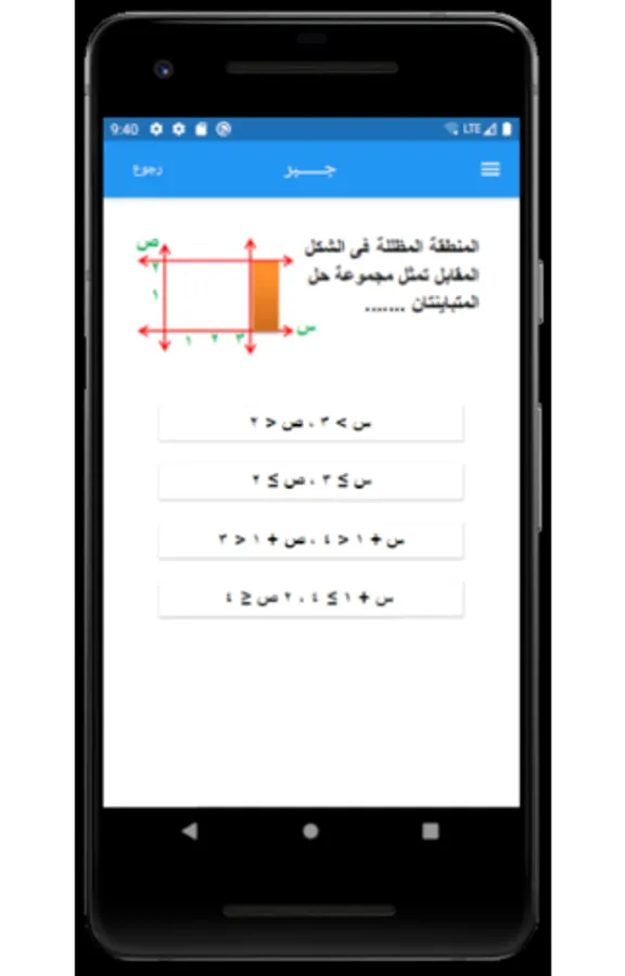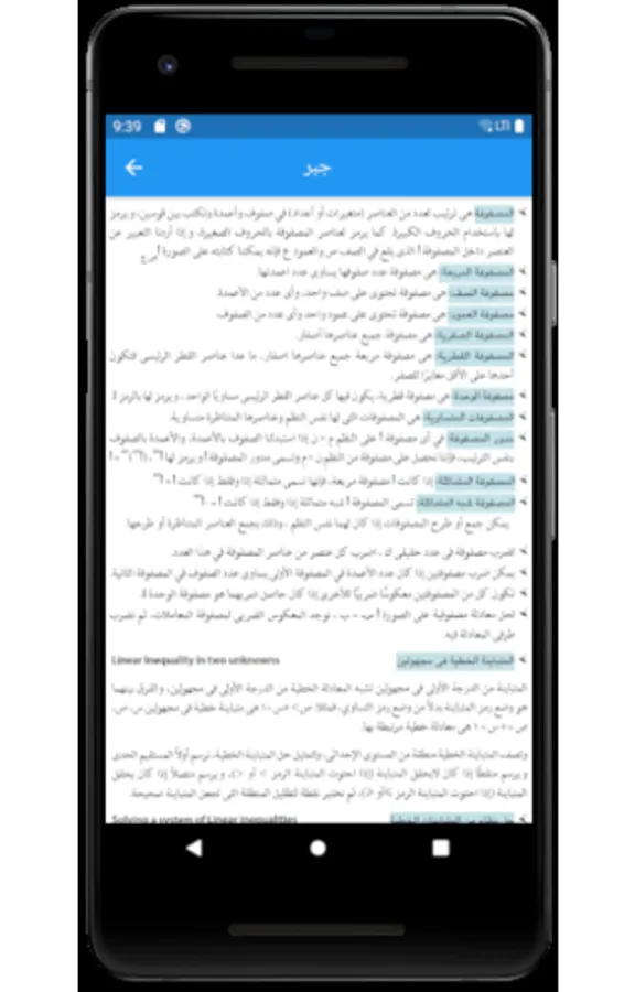 The first electronic book for the final review, Mathematics 1st Term2 Explanation of the curriculum, summary and exams according to the new system. and matrices / inequalities / inequalities in two variables / linear programming / analytic geometry / vectors / operations on vectors / equation of a straight line / vector equation of a straight line / equation of a straight line passing through the point of intersection of two straights / general equation of a straight line / triangles / identities of triangles / solving trigonometric equations / solving triangle Right / Angles of elevation and depression / Segment / Segment / Areas