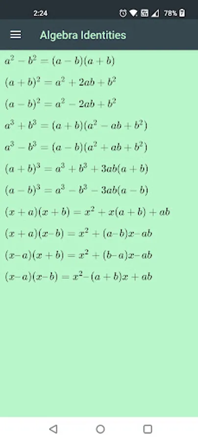 - Use as a reference sheet or guide during exam time to quickly refer the all mathematics algebra formula