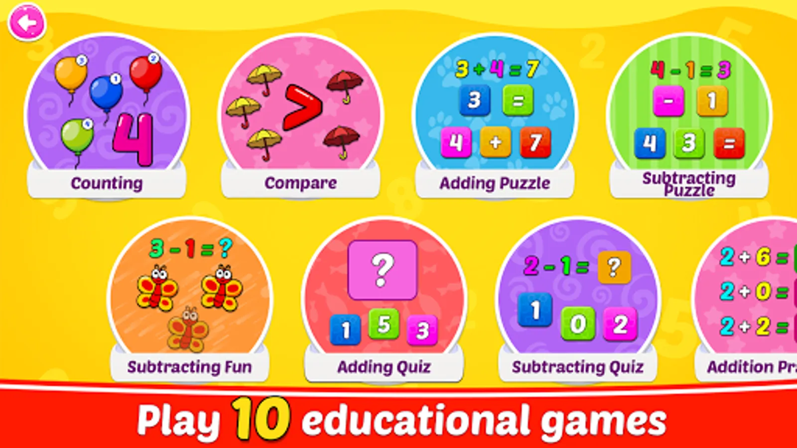 Introduce Math Games for Kids to your child in a simple way. Make your kids enjoy the basics of counting, addition, division, and subtraction multiplied and subscribe to a lifelong learning mindset. Train your child's brain and learn maths with beautiful elements. It is designed for kids ages 2,3,4,5+ year-olds. It is a unique, exciting game for kids and also a very educational, funny & challenging app. Children can easily βοΈ learn math addition, subtraction and character counting.