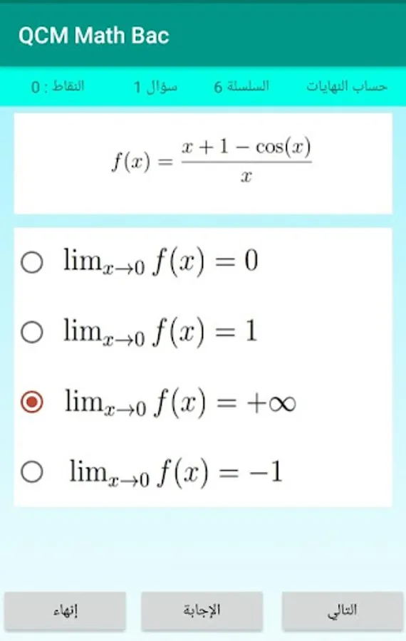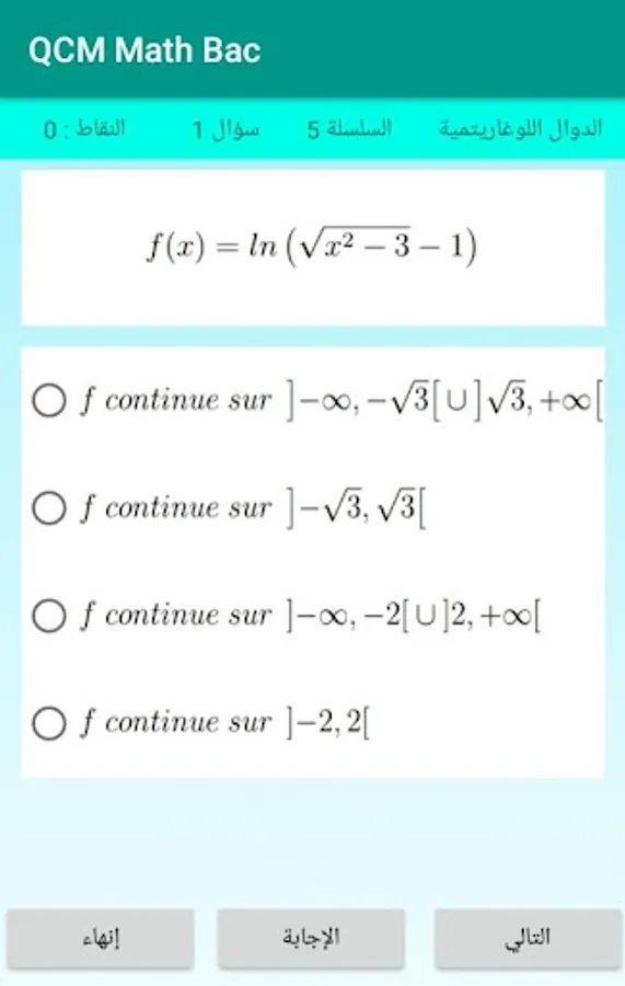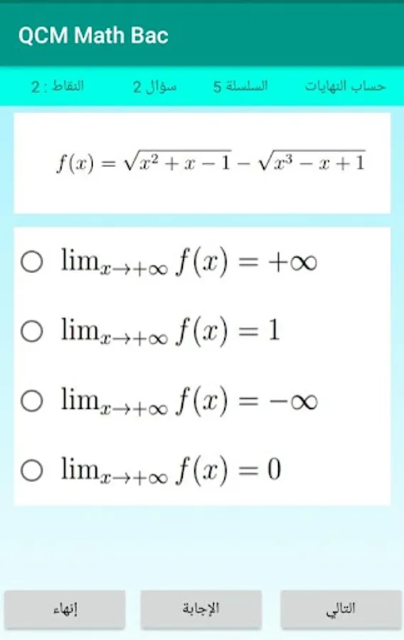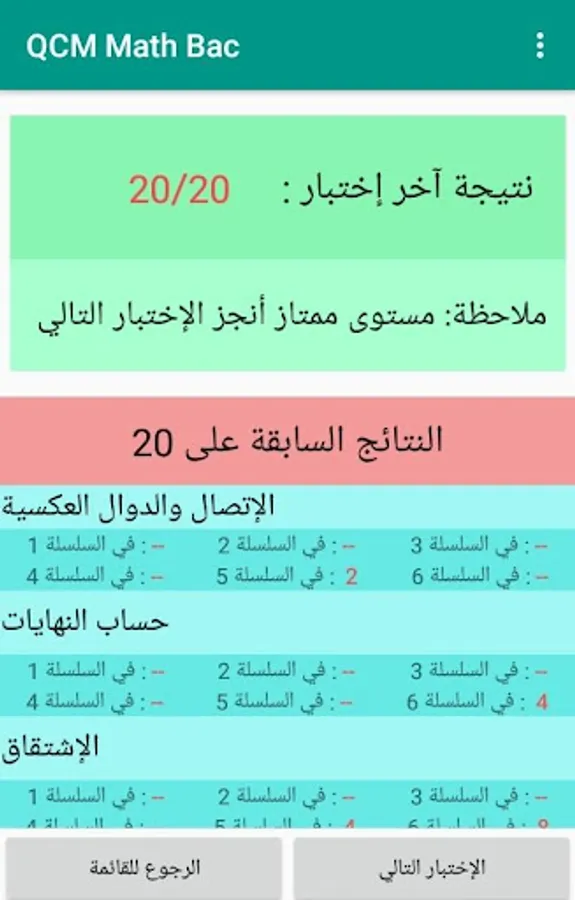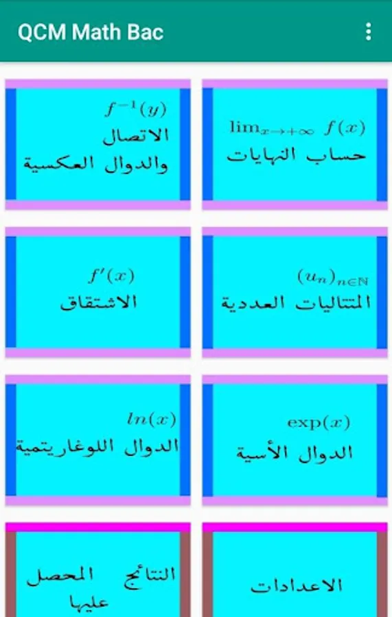 The QCM Math Bac examinations application contains 360 exercises with answers in various baccalaureate lessons: