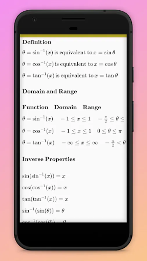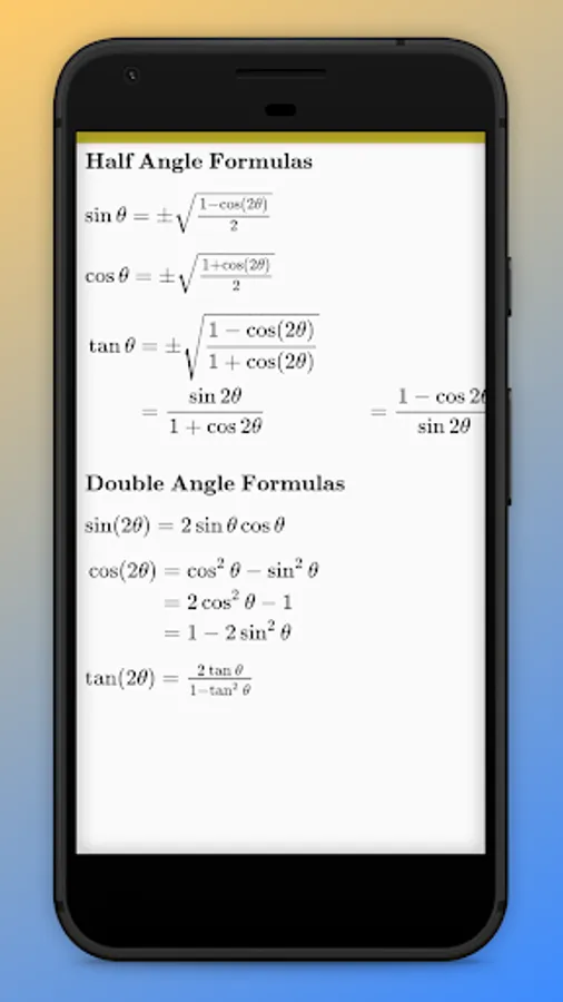 "Trigonometric Formulas" android app contains below formulae: