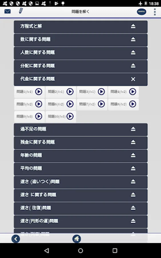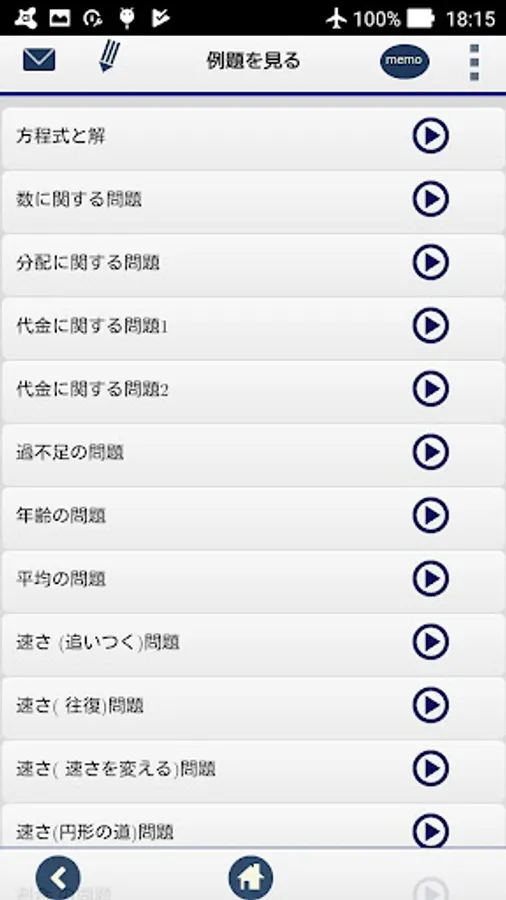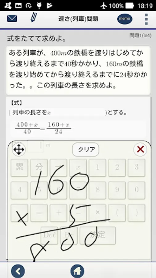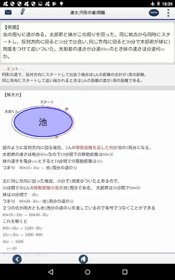 方程式の文章題を例題と練習問題で徹底的に練習する本格的な学習アプリです。
