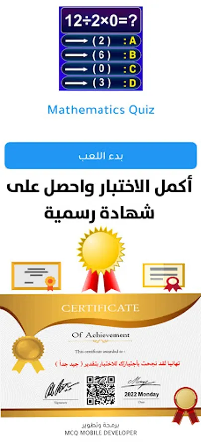 The Test Yourself in Mathematics application contains problems in mathematics in Arabic, a program that develops the mind and strengthens memory, and is a new and innovative way to teach mathematics and learn arithmetic with ease, in different situations.