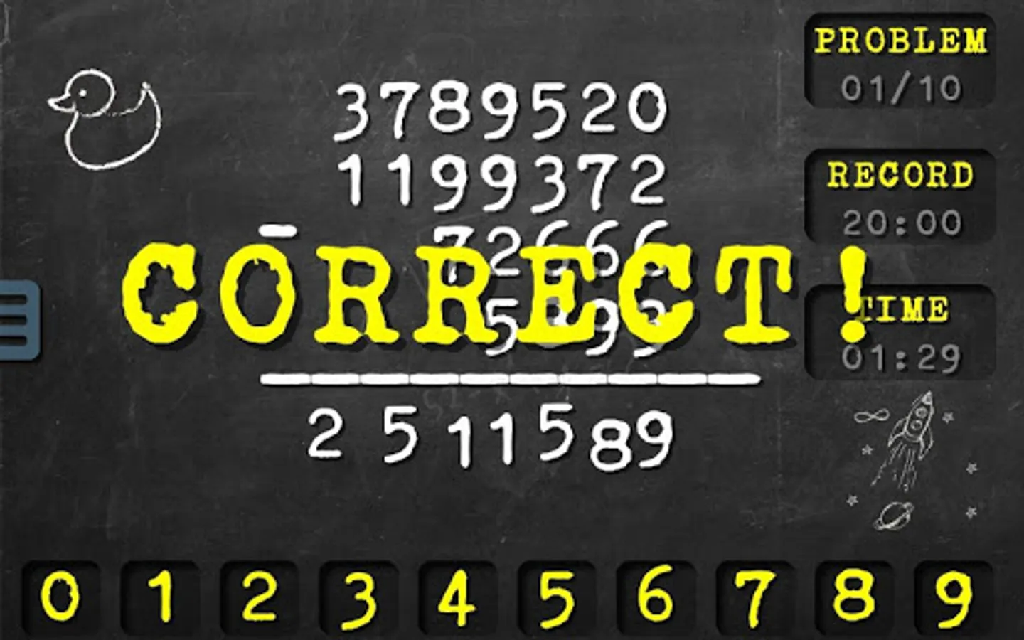 Improve your math skills with Math 4 Kids. The game will help kids and adults to improve their math skills in a fun way.