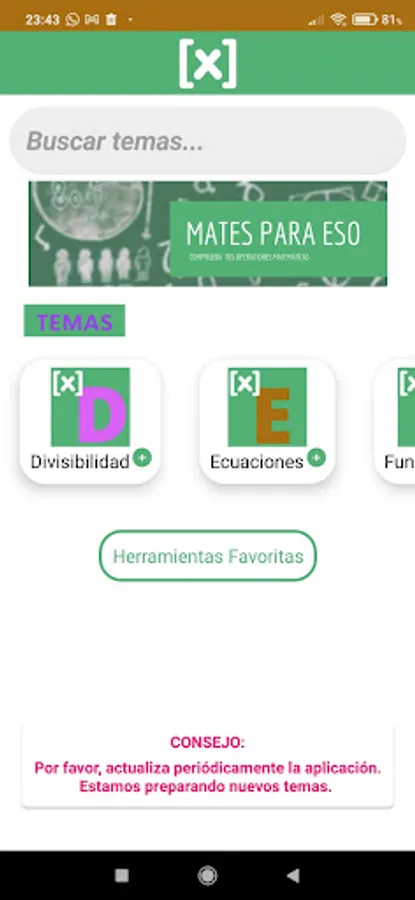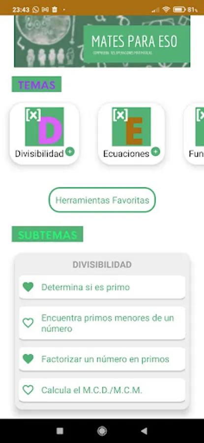 With this app, you will be able to check the results and solutions of your mathematical operations so that you will not know the details of the operations, only the final result. This fact is what makes it attractive for teachers and students, especially of Compulsory Secondary Education (ESO), although there will be features that also serve for primary and/or even university mathematics. With this app, you can only check that you have done a good job but not copy the process. Currently, there are many math apps that give all the detail, but "Mates para ESO" does not, so it is proposed even for use in math exams, as you will only know how you have done, but you can not perform the full exam.