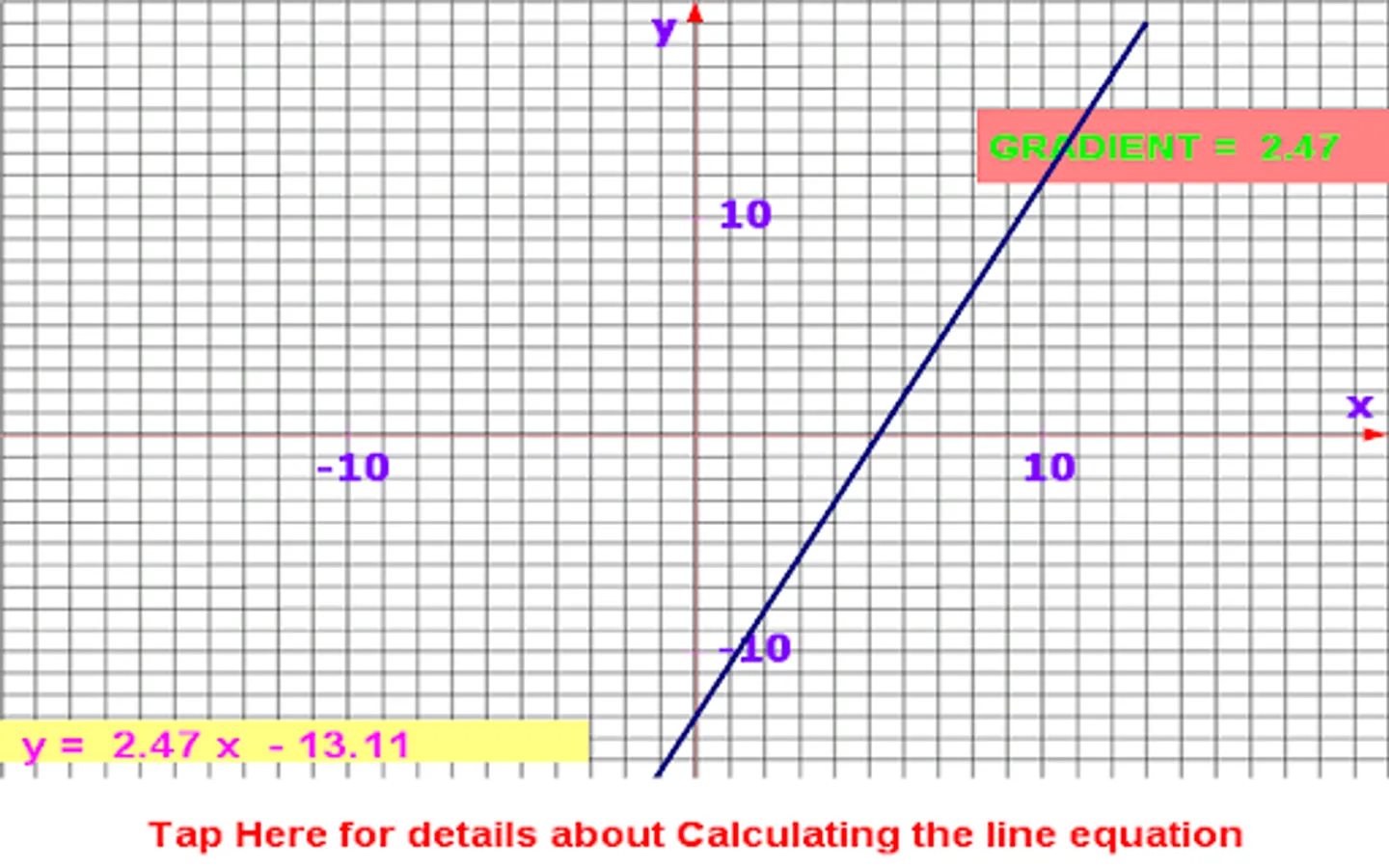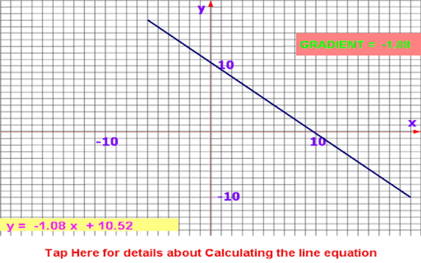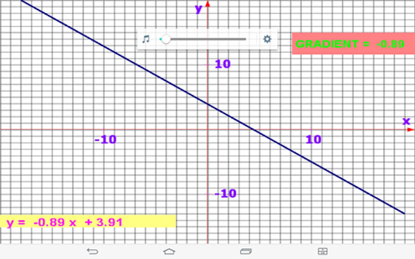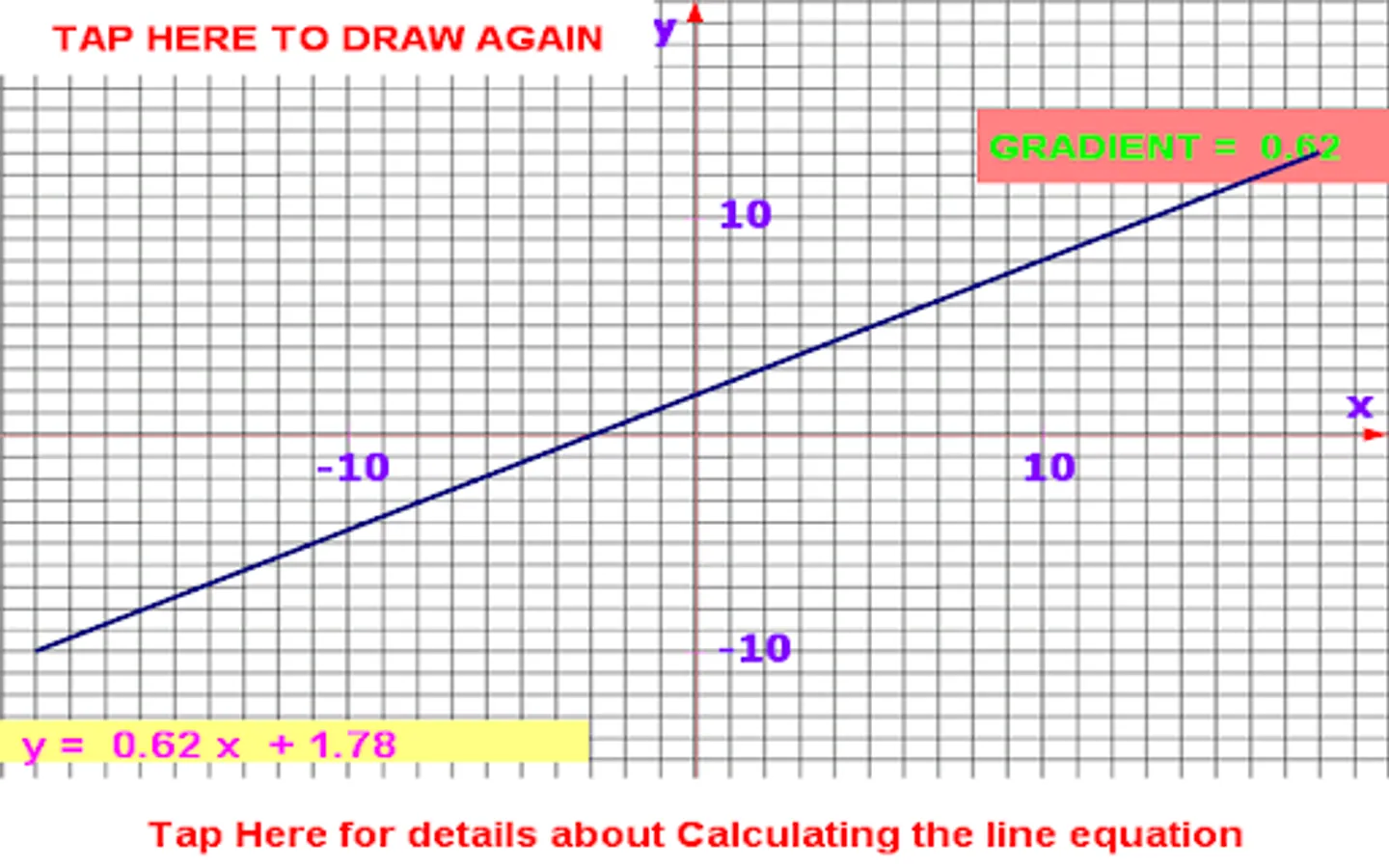 Find the relationship between lines, gradients, y-intercept, linear equations and vectors by drawing a graph with your finger while this app does the rest.
