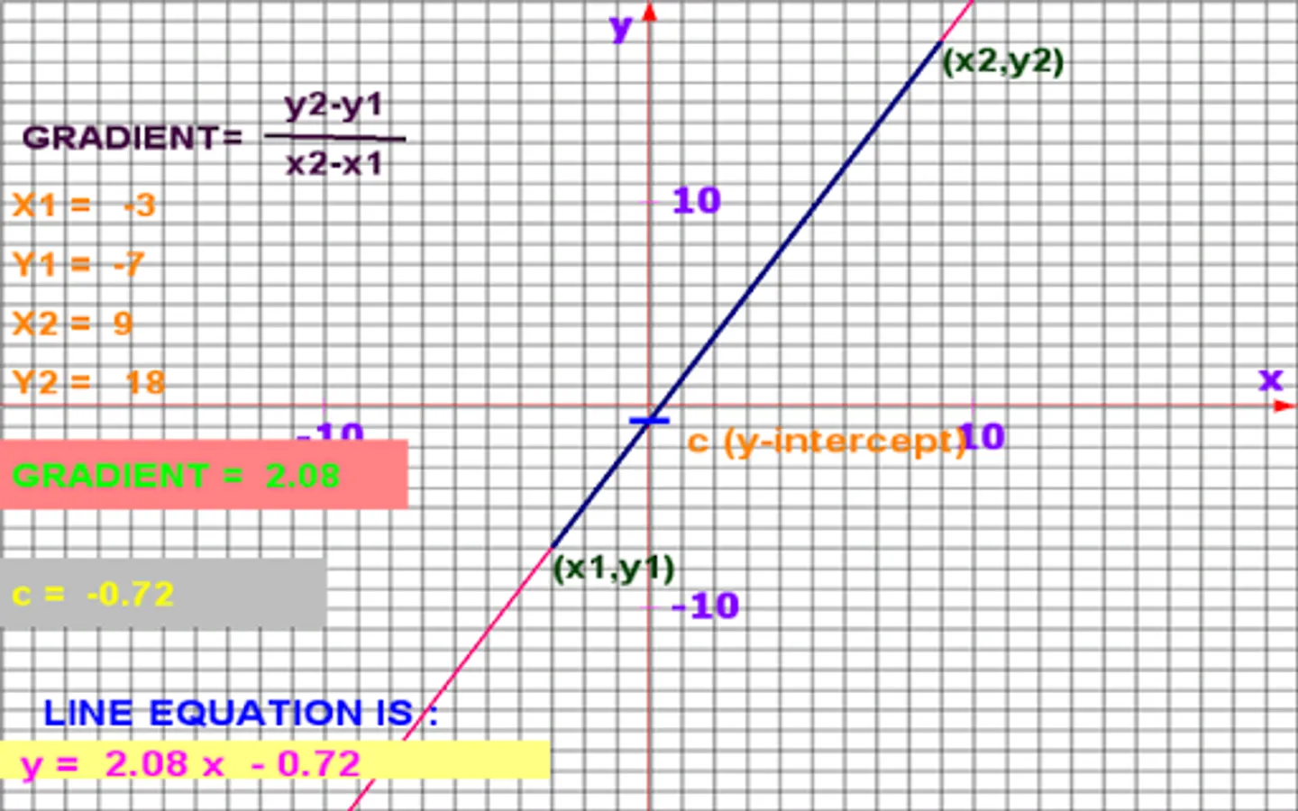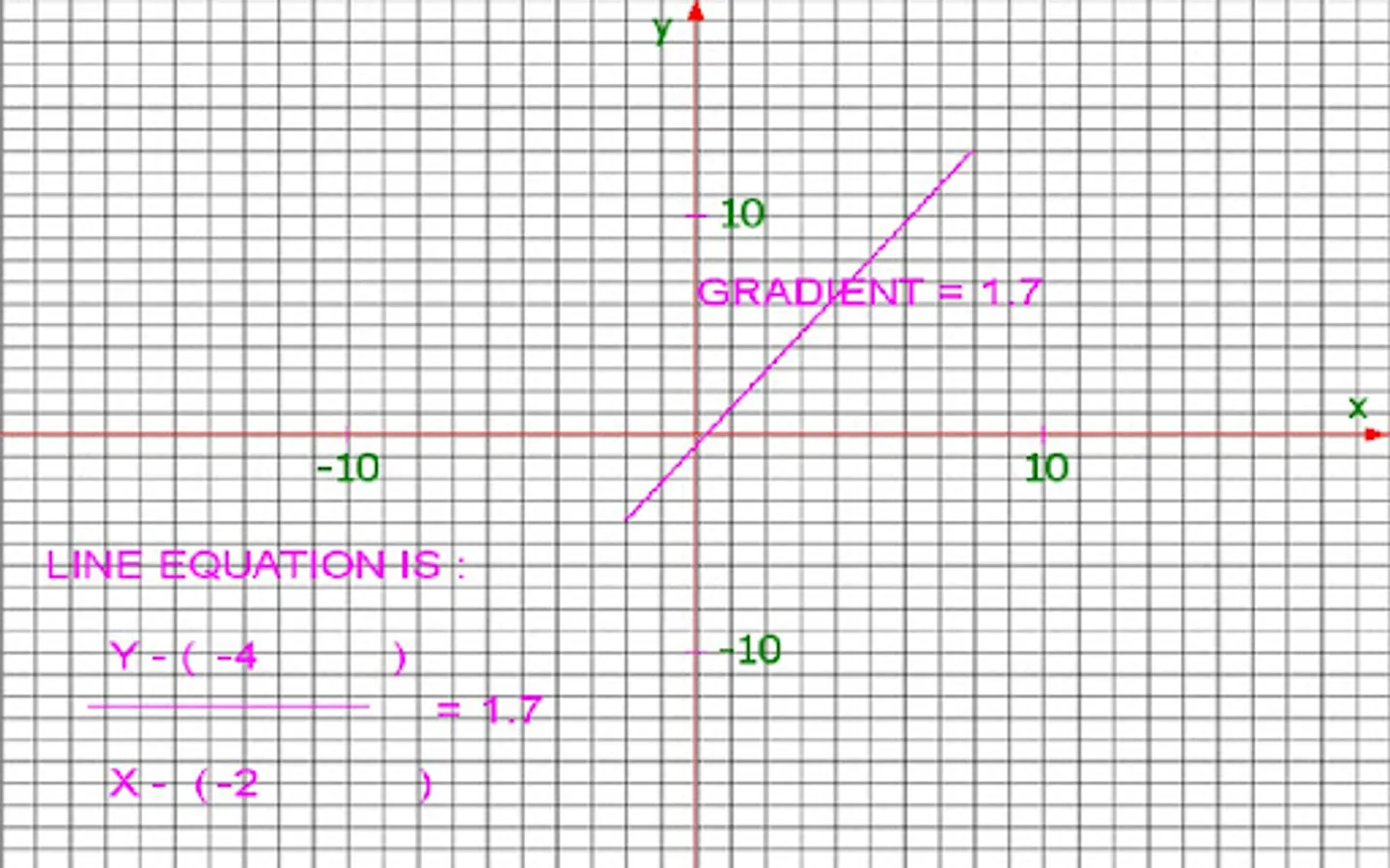 You can work with the equations produced at your leisure, re-arranging them to discover more about graphical mathematics.