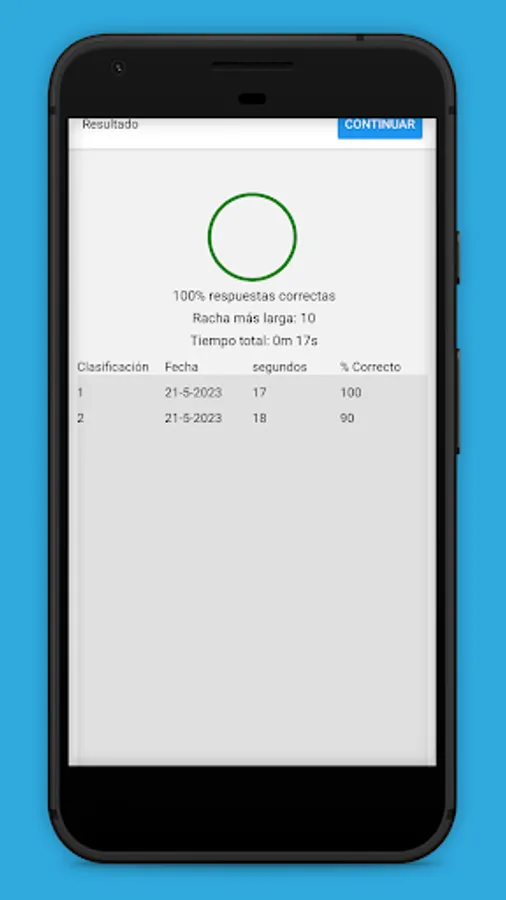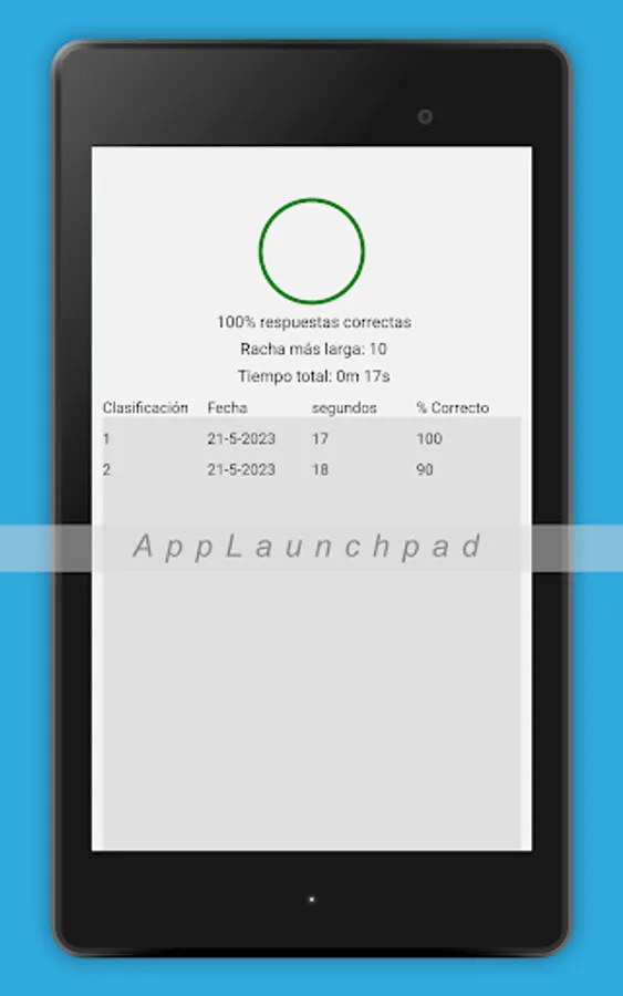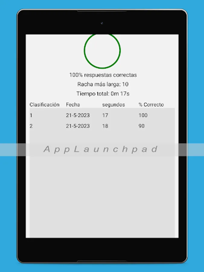 With Matefacil you can practice the tables up to 20. After each practice round a summary will appear with your performance