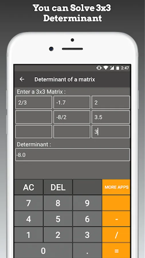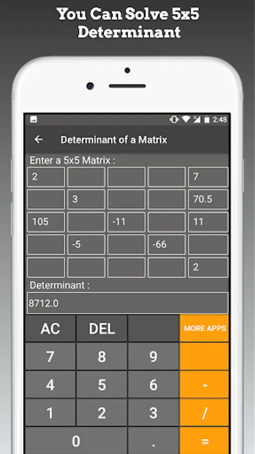 This free app is a math calculator, which is able to calculate the determinant of a matrix. The determinants of following matrices are available: