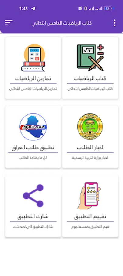 The idea of the fifth primary mathematics application came to facilitate the study of the Iraqi student electronically and to develop the study electronically
