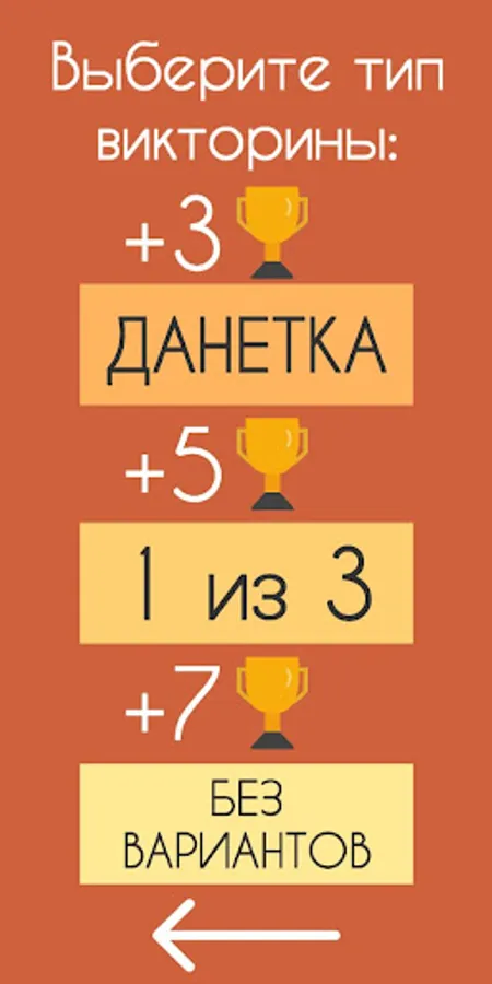 Ты можешь выбрать режим математической викторины: данетка, 3 варианта ответа или квиз без вариантов! После этого выбери свой уровень математических знаний, и ты будешь соревноваться в математике с таким же, как ты!