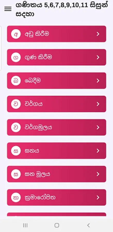 The main focus of this app is to provide basic and most important mathematical concepts for grade 5 to 11 children.This app is consistent with many mathematical operations where you can practice the mathematical questions. Addition, Subtraction, Multiplication, Division, Indices and number patterns are some of them. For each of these operations there will be several quizzes categories which you can choose according to your wish. Also in these categories there are separate levels which contains multiple choice questions. And you will have 30 seconds to complete each question. And the end of the level, your answers will be reviewed and you can add up scores if you have given the correct answer.
