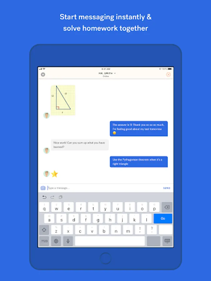 - Students and tutors communicate using familiar functionality like messaging and photo-sharing