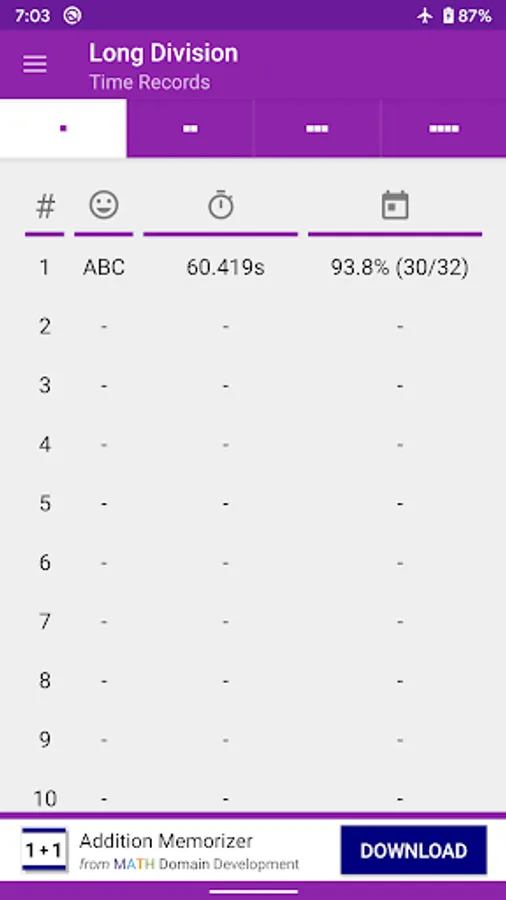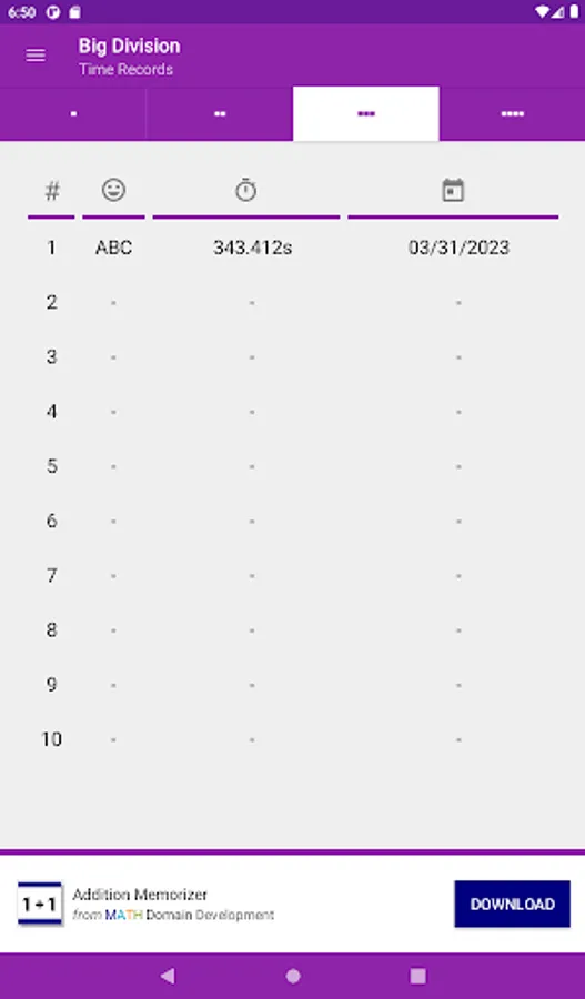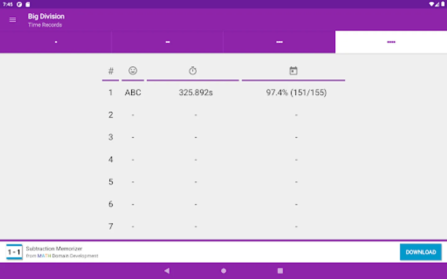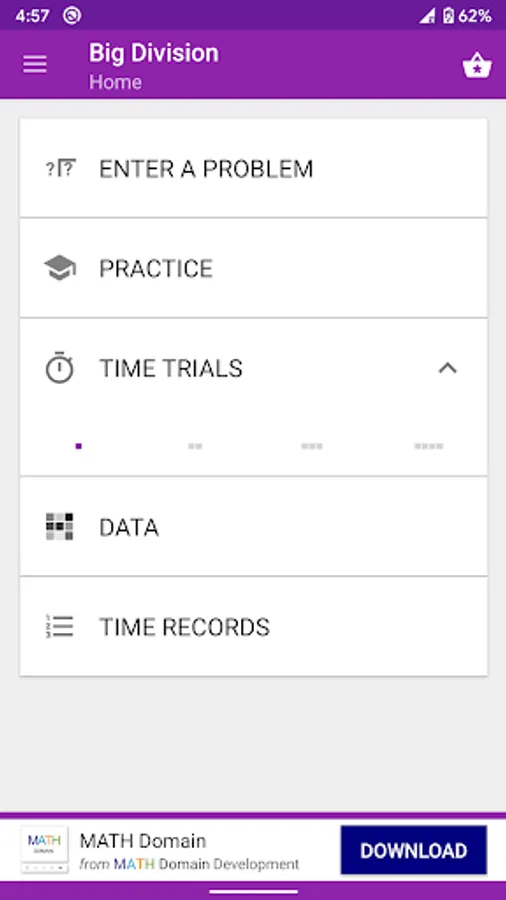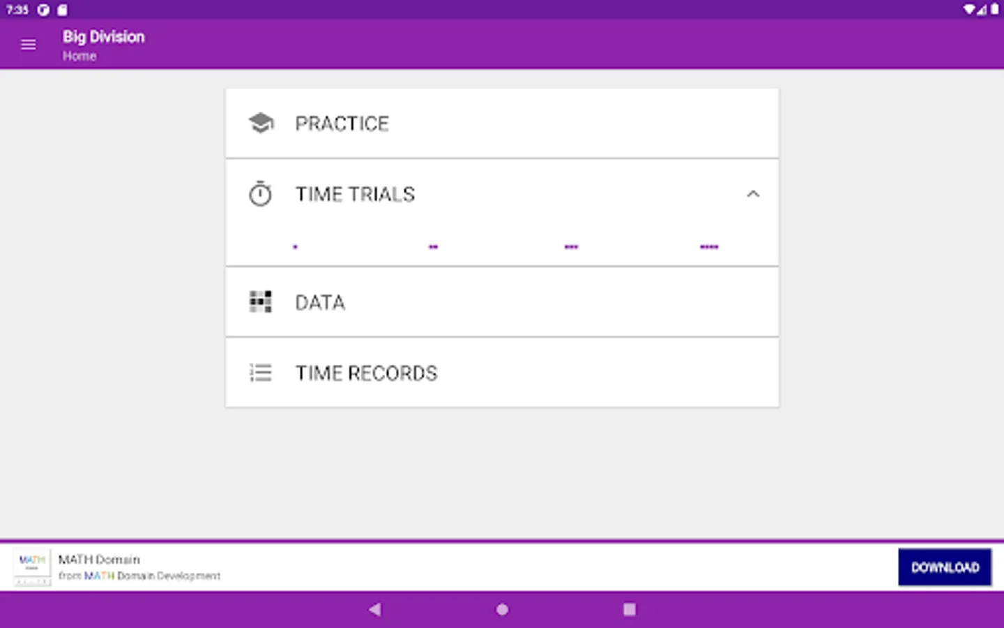 As you can see, a long division problem is made up of several division, multiplication, and subtraction problems, so Big Division also is an excellent source for improving and maintaining basic arithmetic speed and accuracy. By using Big Division, you can get your daily dose of math brain training exercises that can help you pass a test, perform quick calculations at work, at home, while shopping, or anywhere you need to solve simple, easy, math problems.