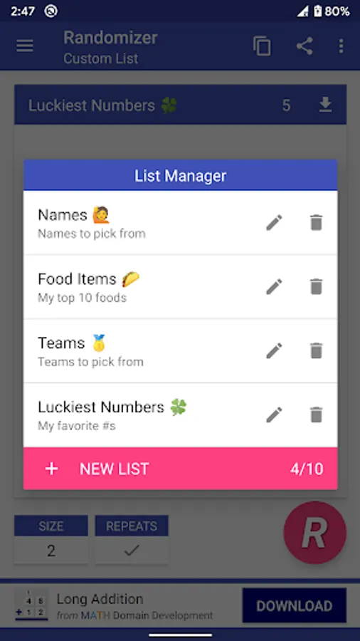 + Custom list creator, shuffler, and list item selector