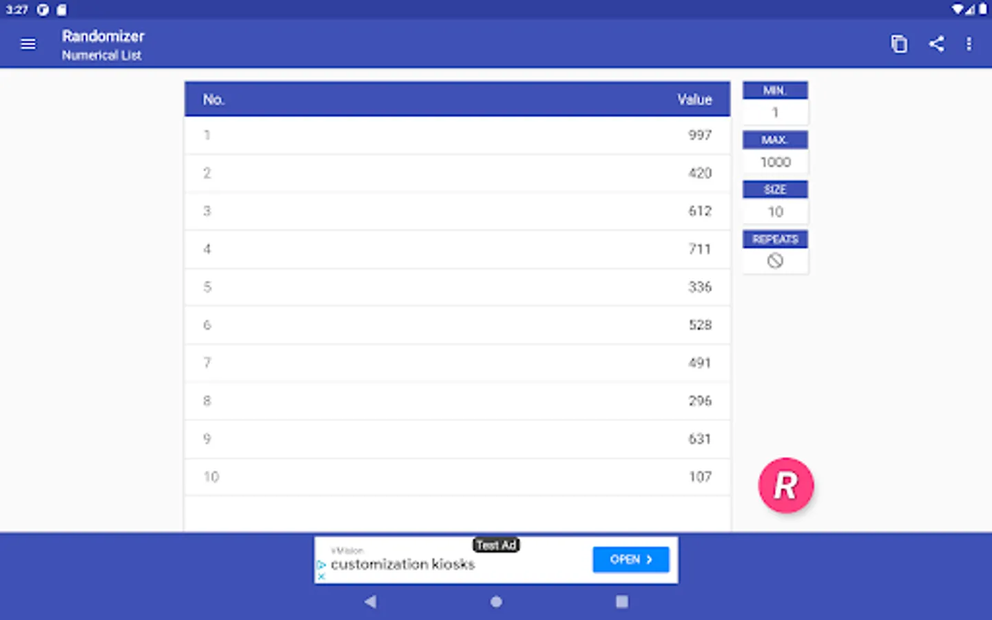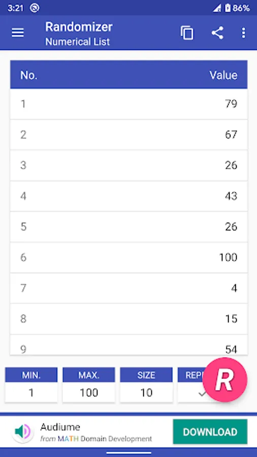 + Random numerical list generator