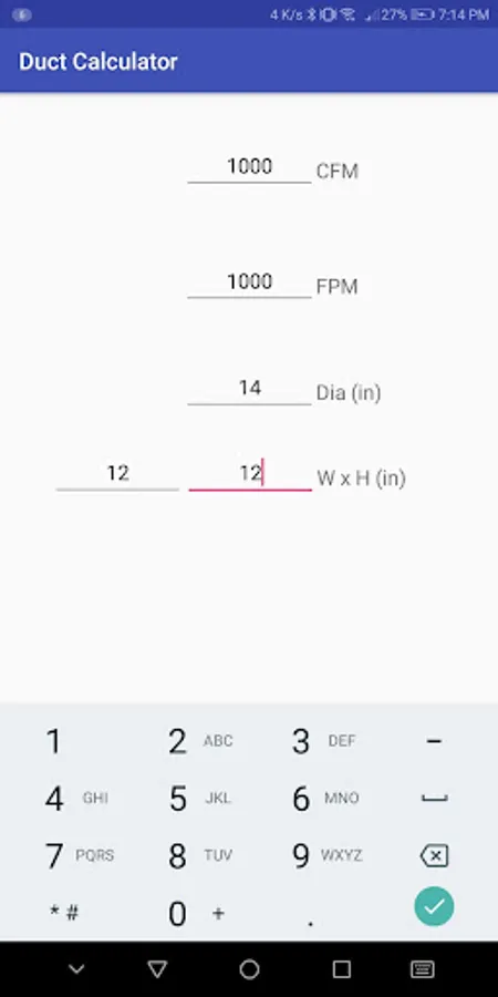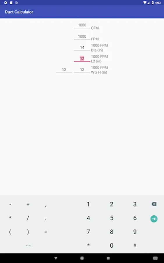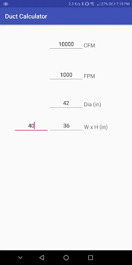 Obtain swiftly a diameter or a rectangular size (rounded in increments of 2") to get the right FPM/CFM of an air flow.