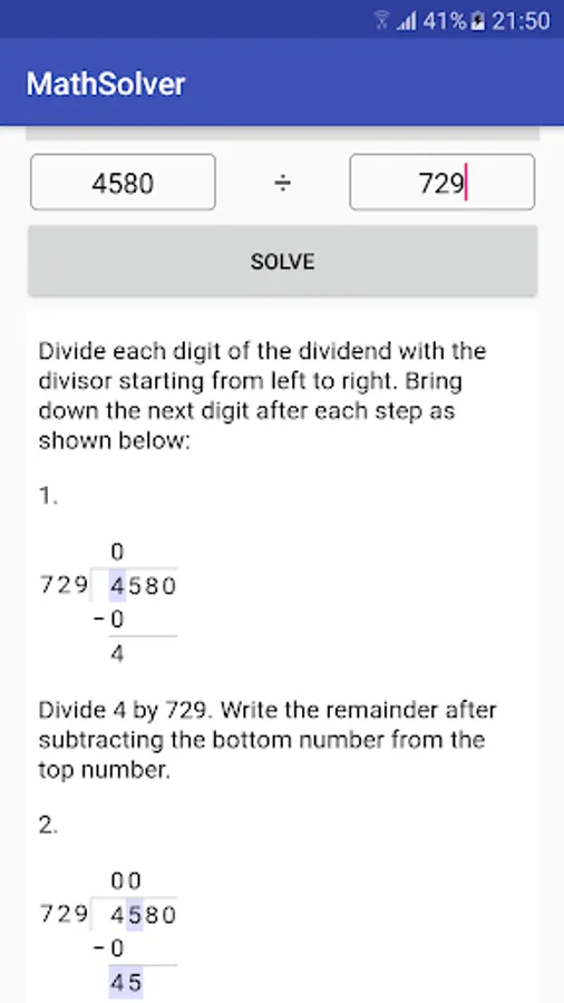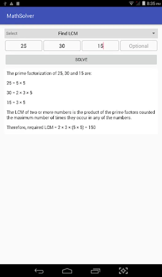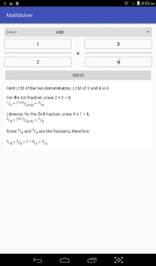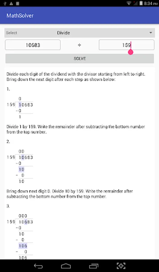 MathStep is a free math app intended to help beginners, who struggle with basic math concepts. This app will show you step-by-step solution to all kinds of problem involving numbers in classroom teaching or everyday life. The app also serves as a math refresher for adults and homework helper for new learners.