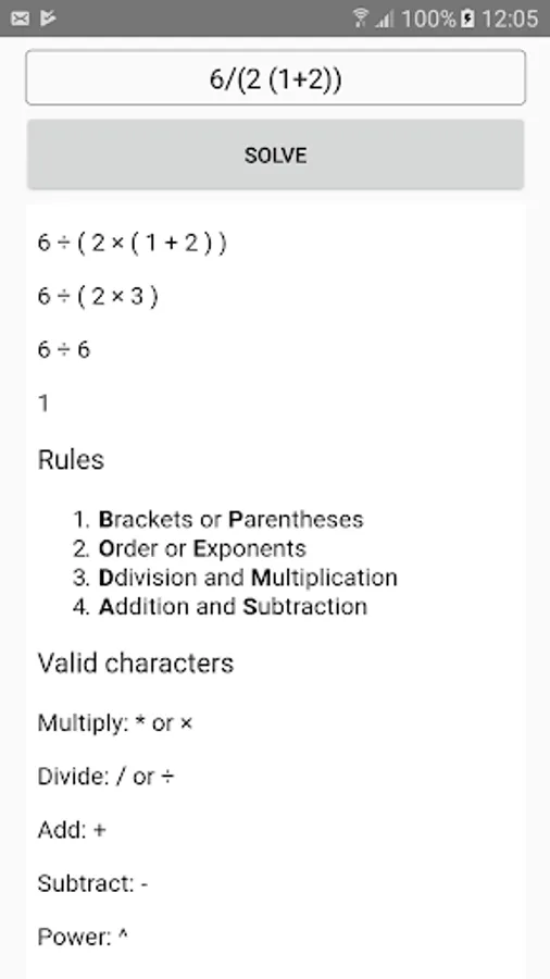 - Solve arithmetic expression with PEMDAS/ BODMAS rule.