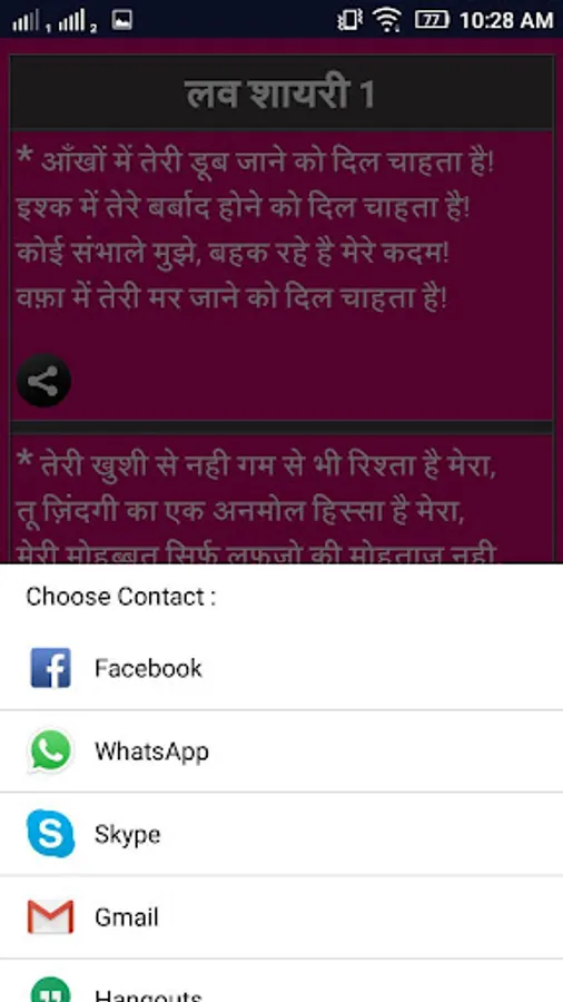 this app essentially on the market in Hindi then user will easlly perceive shayari and share along with her family and nearest person.