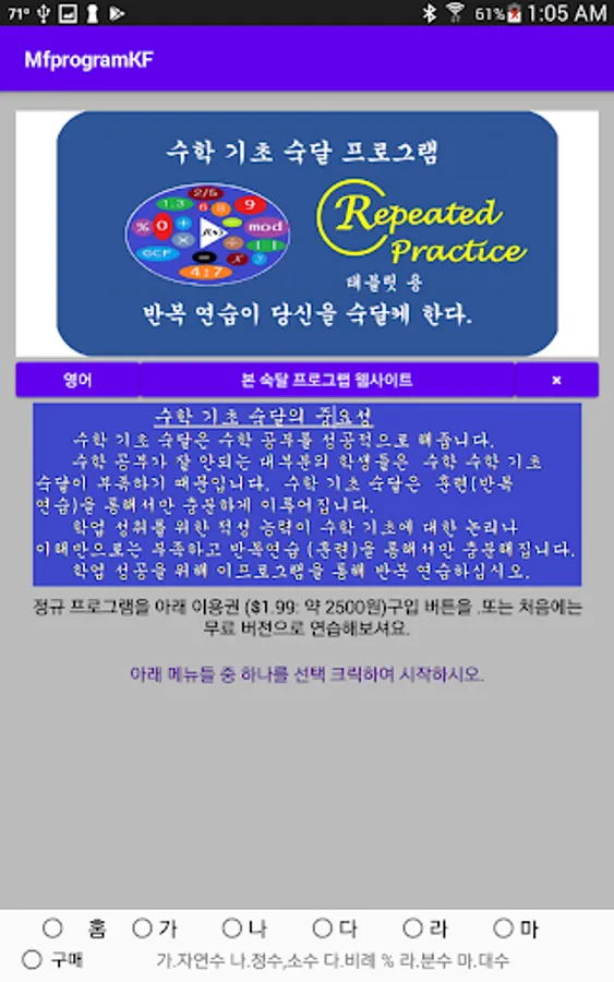 The Math Foundation Mastery program is a program that allows you to train yourself through repetitive practice to successfully achieve the Basic Math Mastery.