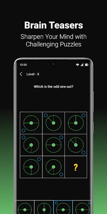 - In the observation category, users must use their powers of observation and problem-solving skills to identify the odd one out from a series of shapes or images. This category includes riddles that challenge users to quickly observe and analyze a series of images to find the one that doesn't belong. Combining observation and quick math skills, users can expect a fun and challenging experience that will keep their minds sharp and engaged.