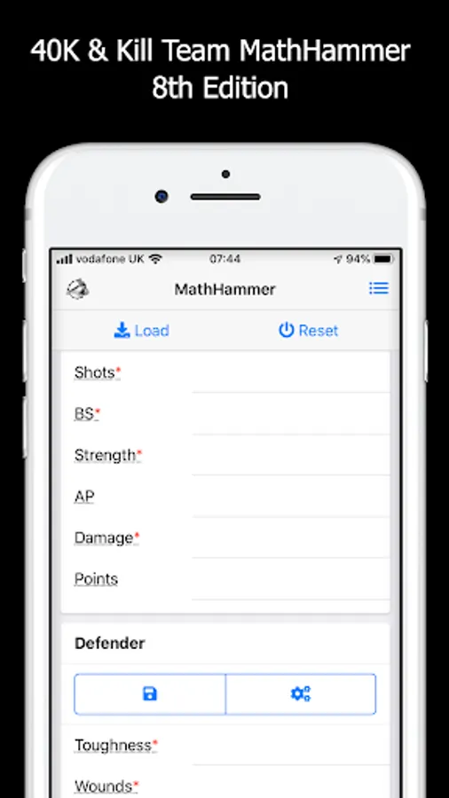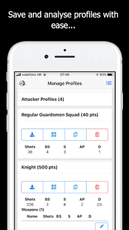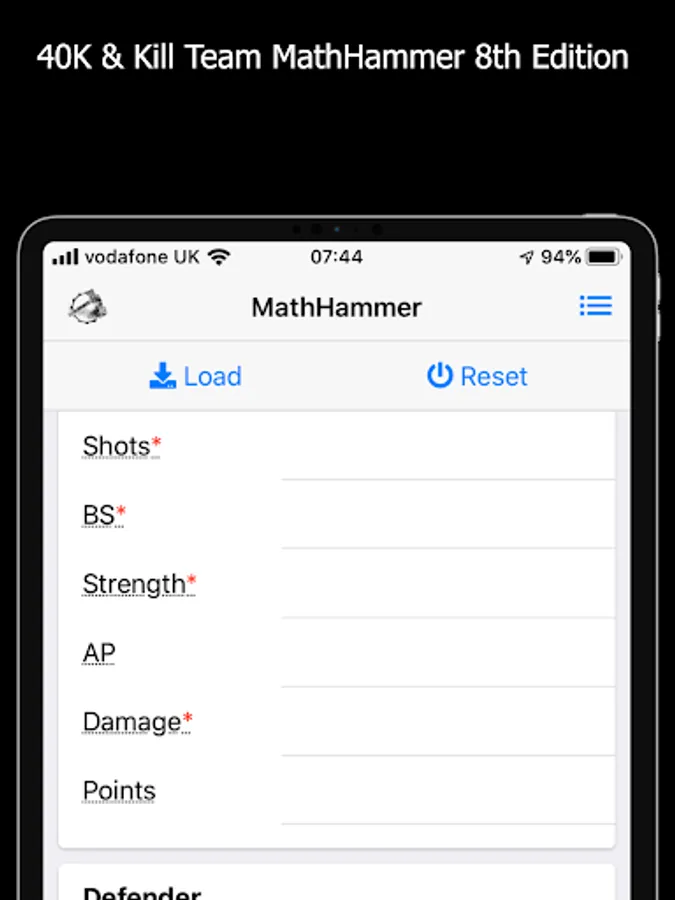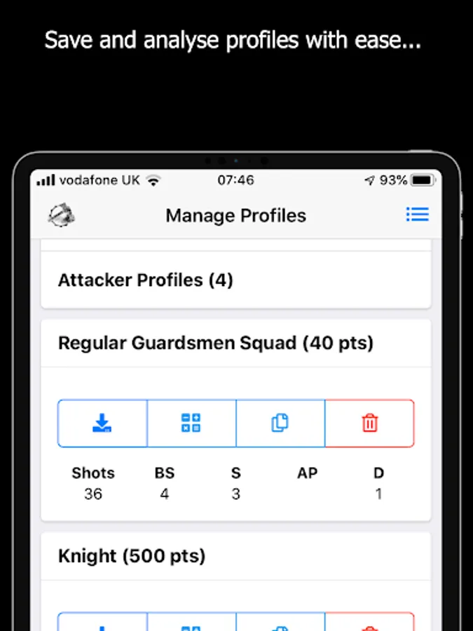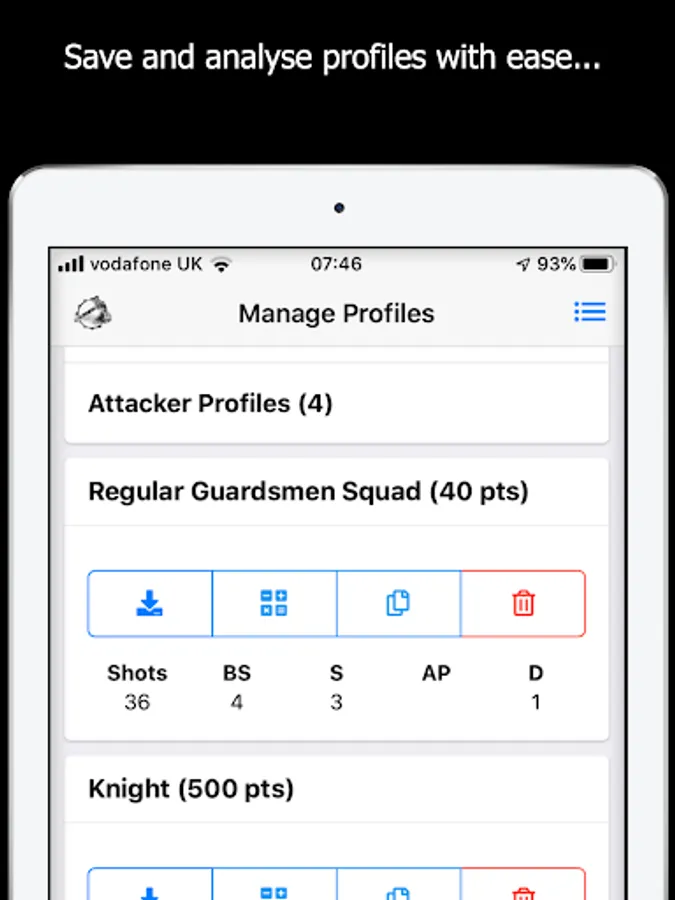 - Quickly input and save attacker and defender profiles