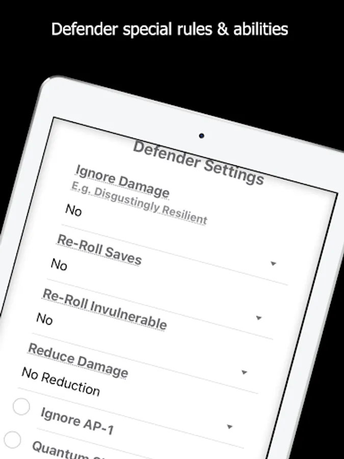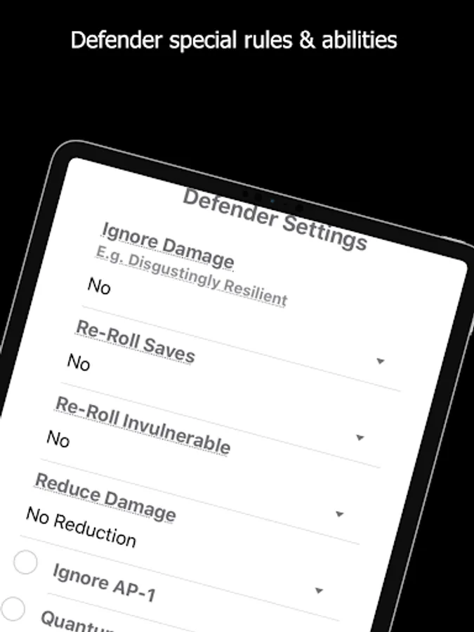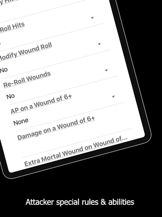Special rules and abilities can also be taken into account to ensure your results are accurate;