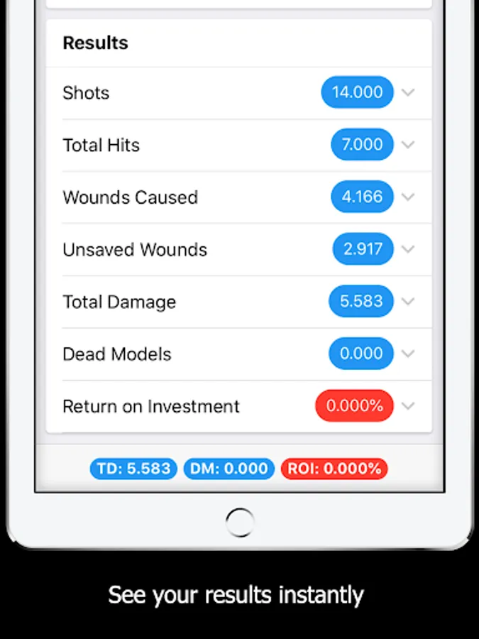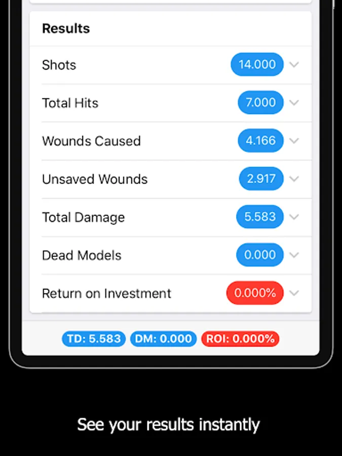 You can toggle Kill Team output on and off. When switched on, your results will show you the percentage chance of a successful OOA Roll - if the enemy model was killed.