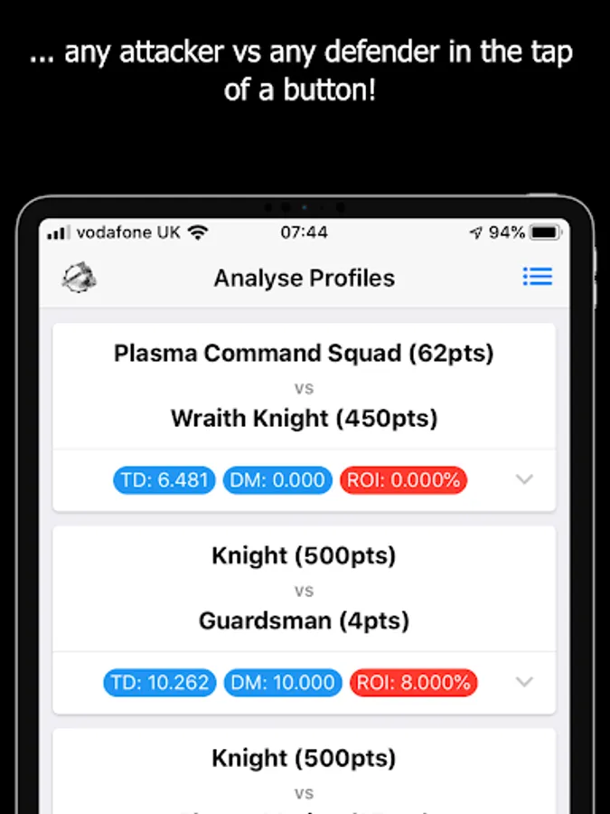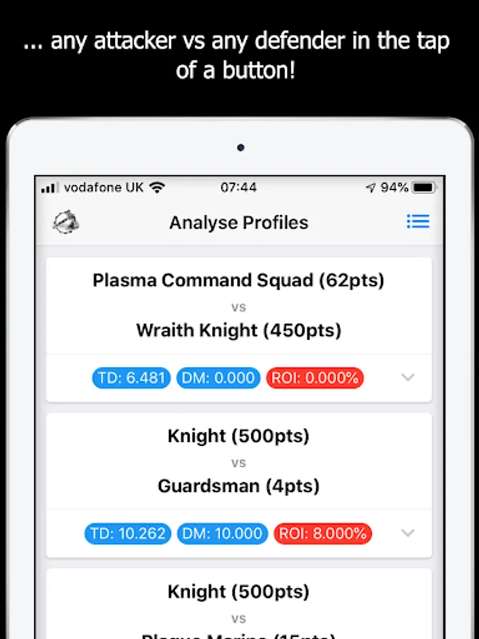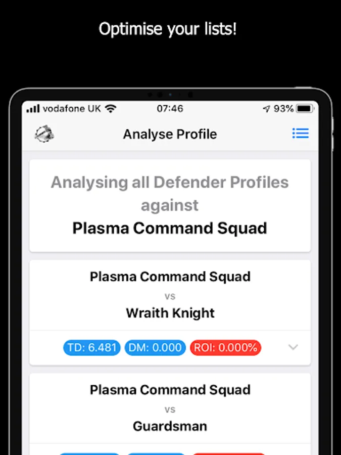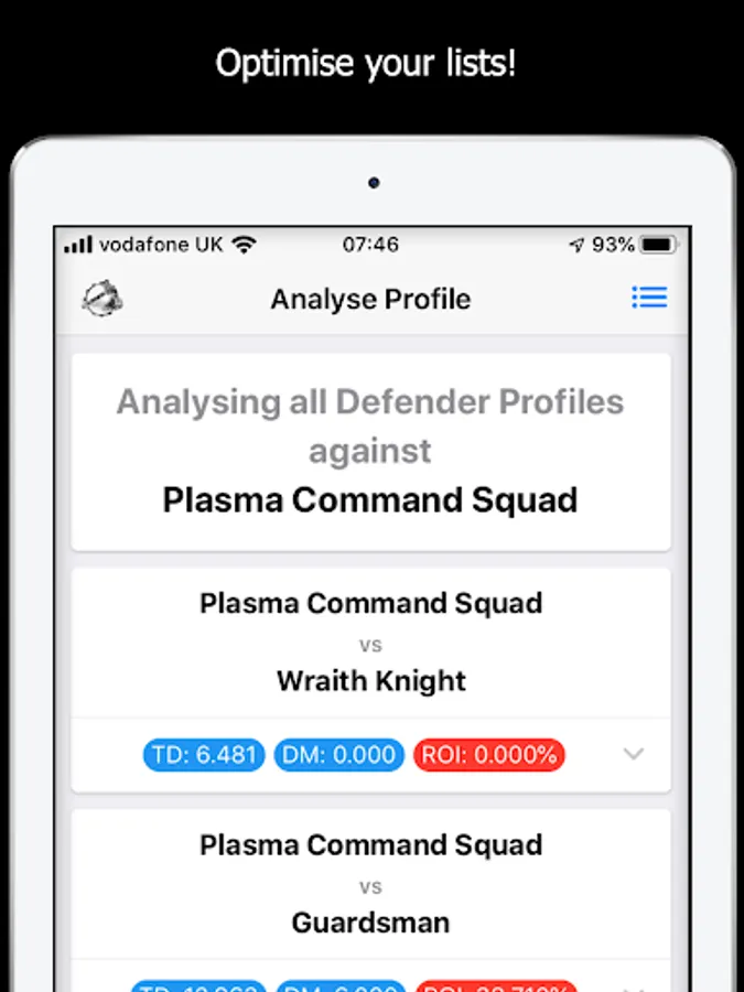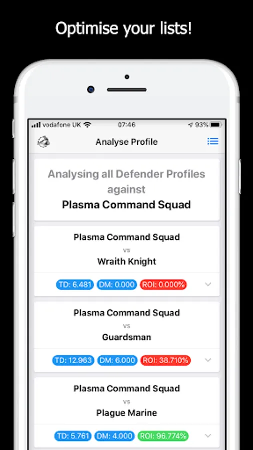 By using MathHammer 40K you get perfect target prioritization in one click, for your whole army.