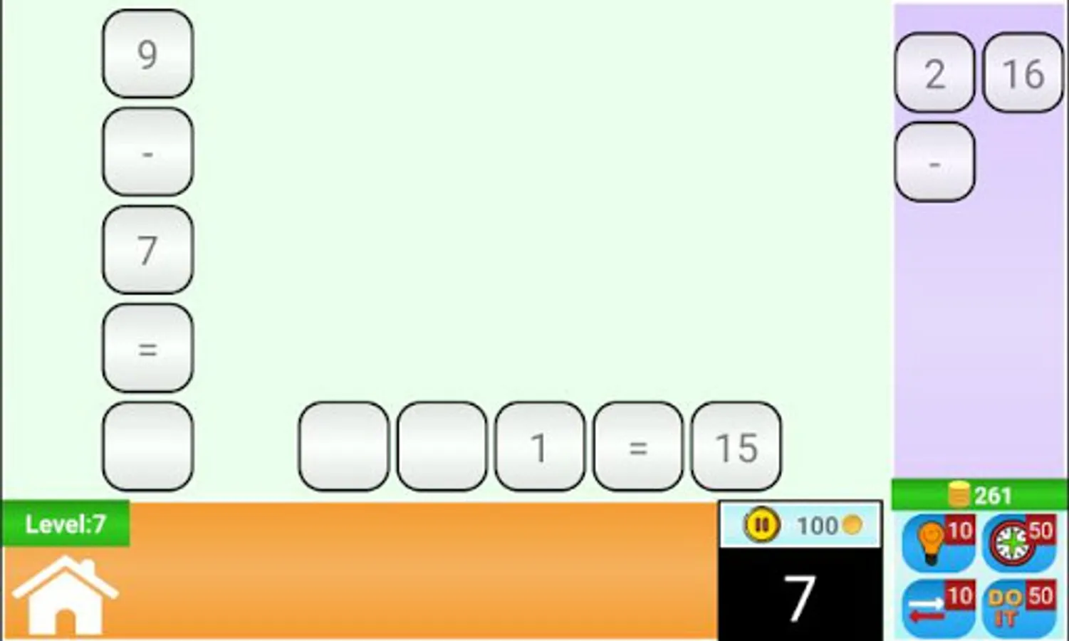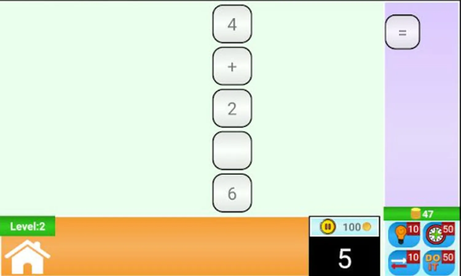 This game will help in decision making in quick time. It is very easy at beginning and gets difficult on the higher levels. Try to reach as much higher level as possible. On game over, try again to improve your best. That way you will have quick solving skills. While playing you can use “Hints”,”Add Time”, “Flip Puzzle”, “Do It” or “Stop Time” as limited lifeline. So, let’s have fun with Math. It is full of Math Puzzles. Play this amazing Math Brain Game.