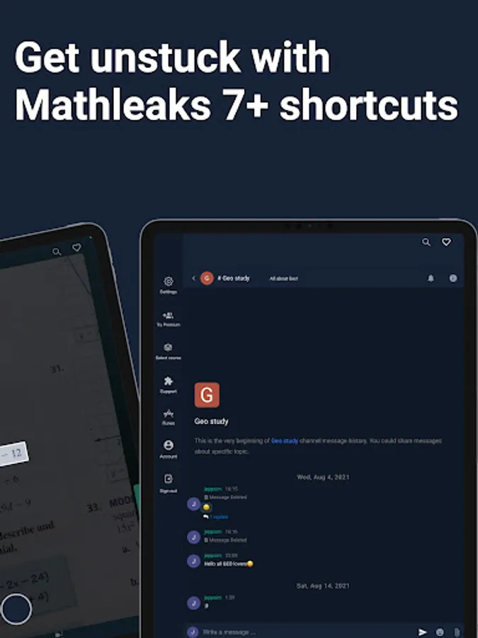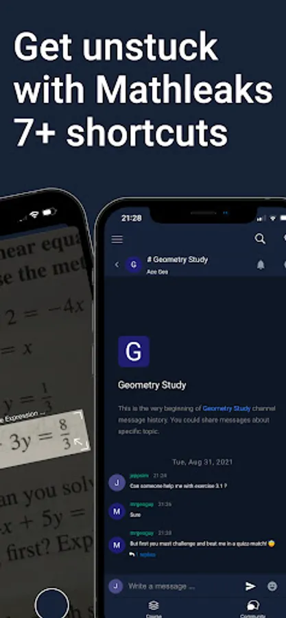 * Math Community - Connect with peers, teachers, and tutors in a Mathleaks community who are using the same textbook or taking the same course. Study together, challenge each other, and take quizzes covering a variety of math topics
