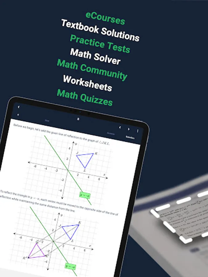 * Math Solver - Get help with your Pre-Algebra, Algebra 1, and Algebra 2 textbook exercises using the Mathleaks solver. With the camera on your smartphone, you can scan and solve exercises instantly. All you need to do is download the Mathleaks app or use it on our website. All of the solutions include step-by-step instructions to make it simple