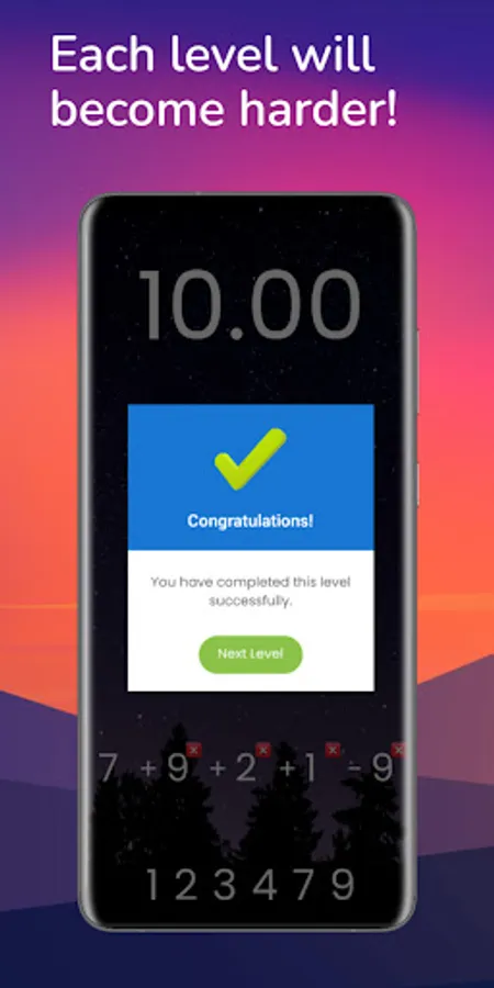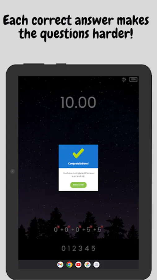 Multiple math quiz levels which get harder with every correct answer will keep your interest and make you squeeze your brain!