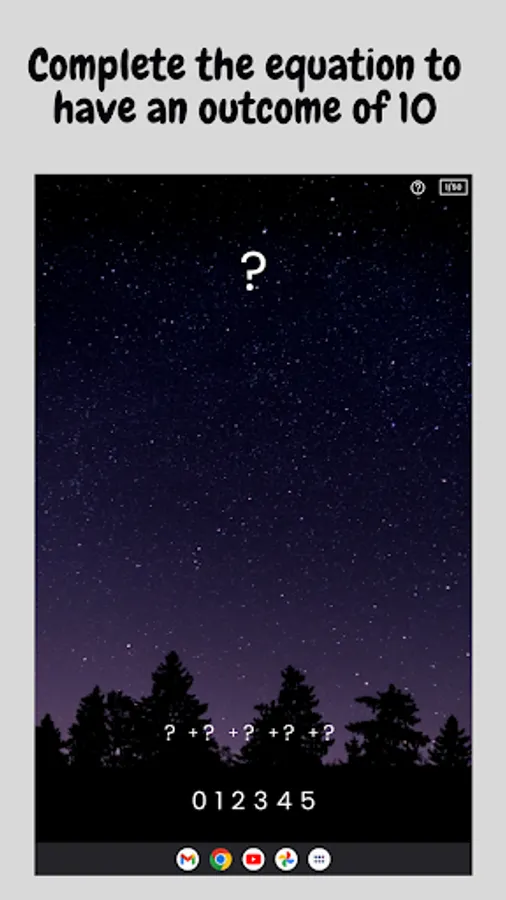 Work-out your brain with Math Quiz 10. The goal of the game is to complete the math problem in order to have an outcome of 10.