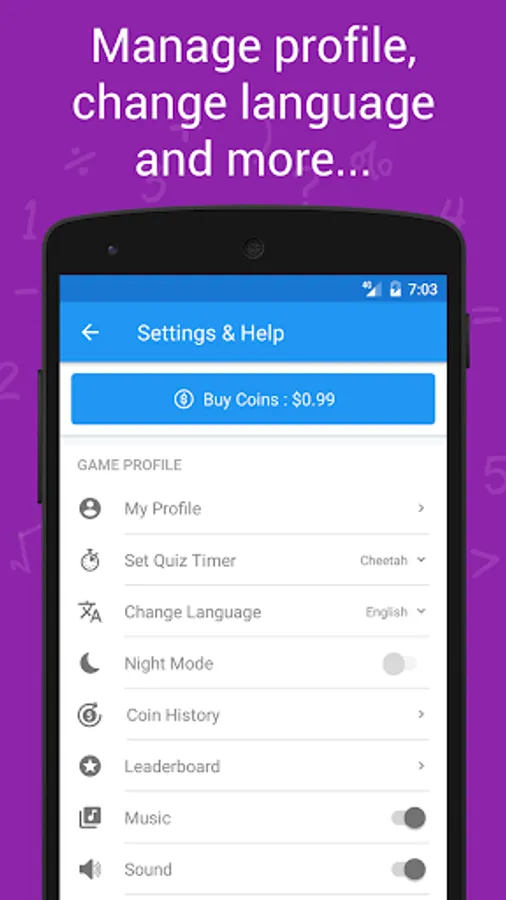 Is it hard for you to finish game within limited time? No worries! We’ve 5 quiz timer modes for you. Just go to Settings > Set Quiz Timer and set as per your math expertise. Also app offers multilingual support to let you explore app in your preferred language.