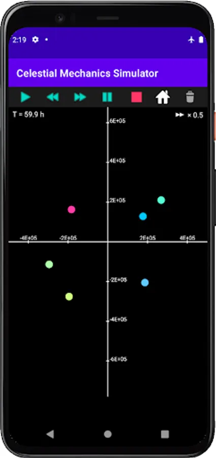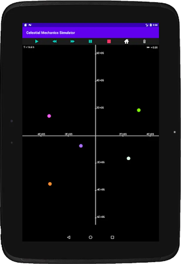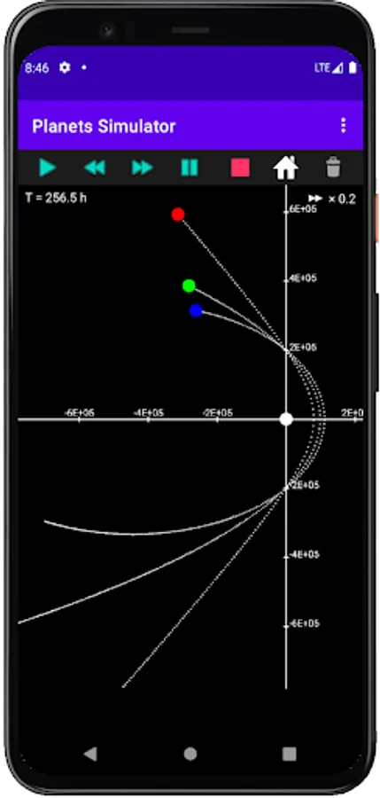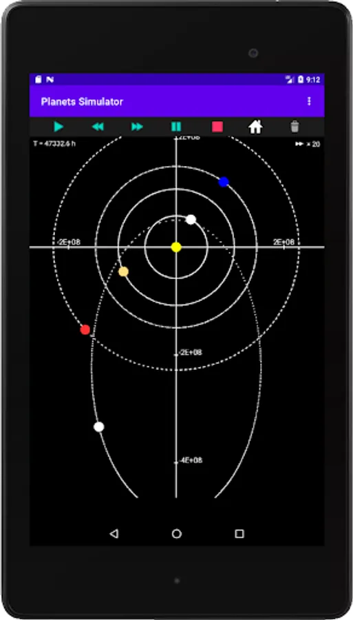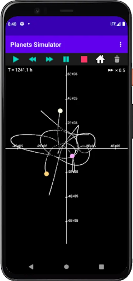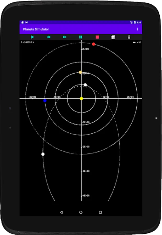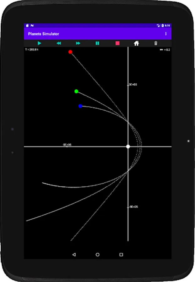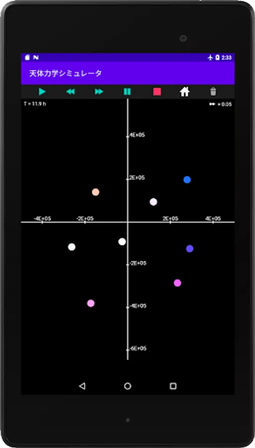 This app simulates planetary motion on the basis of Newton mechanics. Let's place planets as you like, and observe movement !