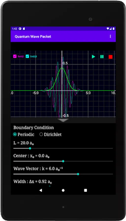In this app, you can freely define initial conditions of wave packet and potential energy and observe how electron moves under the conditions. Let's observe how electron passes through potential barrier, and so on!
