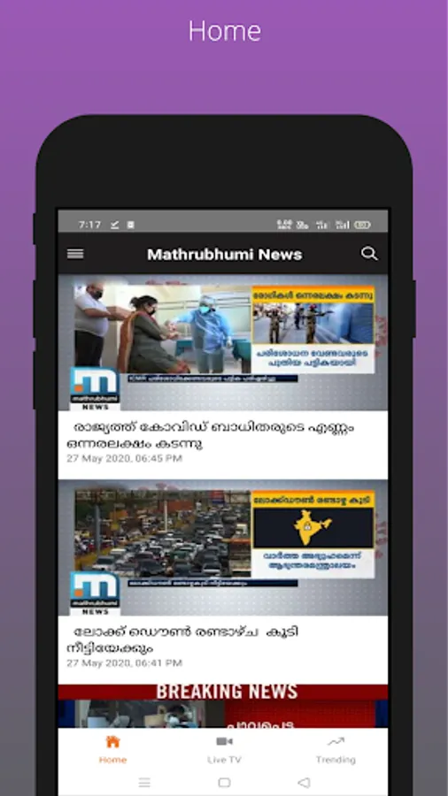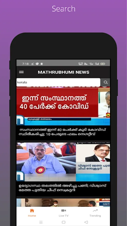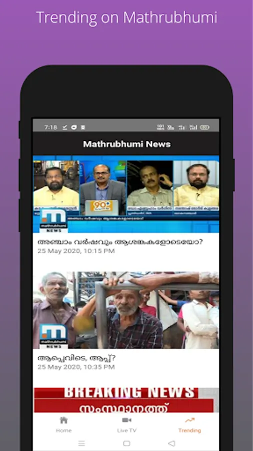 Here is television news.. On the Go.. for You! Mathrubhumi live news brings you the latest from Kerala and India. Watch archived news videos and speciality programs. Text content is available in English and Malayalam.