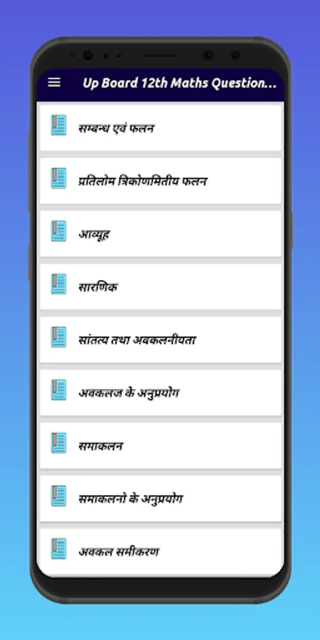 This app only made for up board class 12 hindi medium students or in this app only cover Up Board 12 Math Question Bank every up board class 12 question bank student only for hindi in this app you will get class 12 up board math solution with question bank class 12 up board 2023 to get here every type of previous paper solution with up board class 12 maths solutions