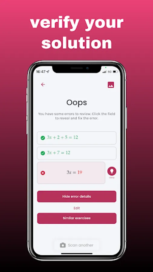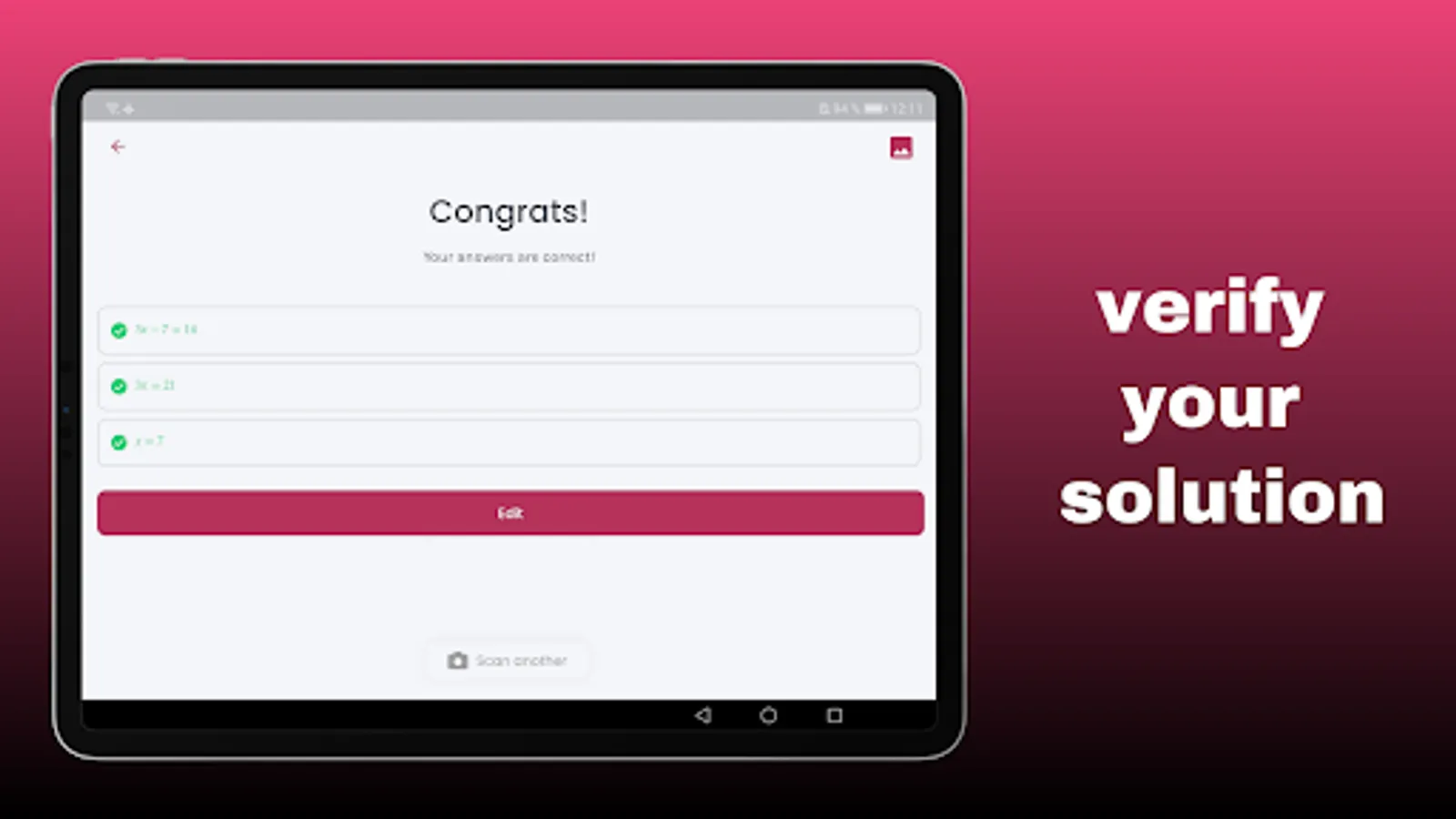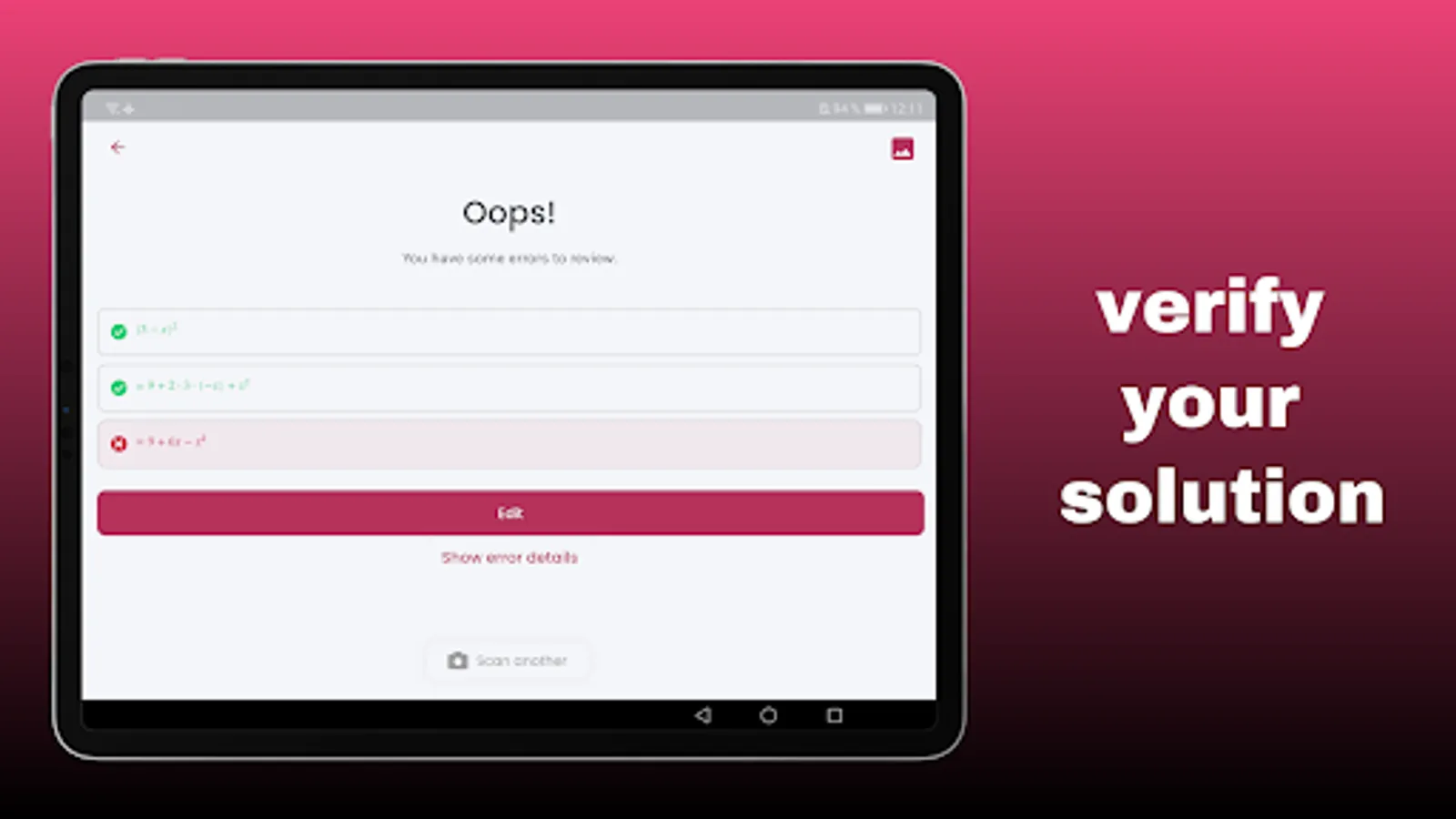 Plus, there is often more than one way of solving the exact same problem. And that’s exactly the point of our app, we verify YOUR INDIVIDUAL solution paths - not just showing standard solution paths.