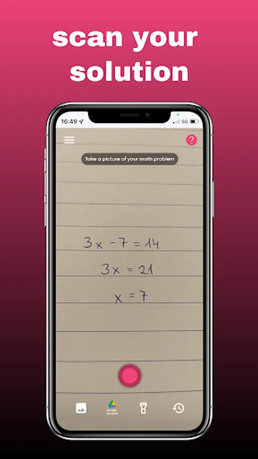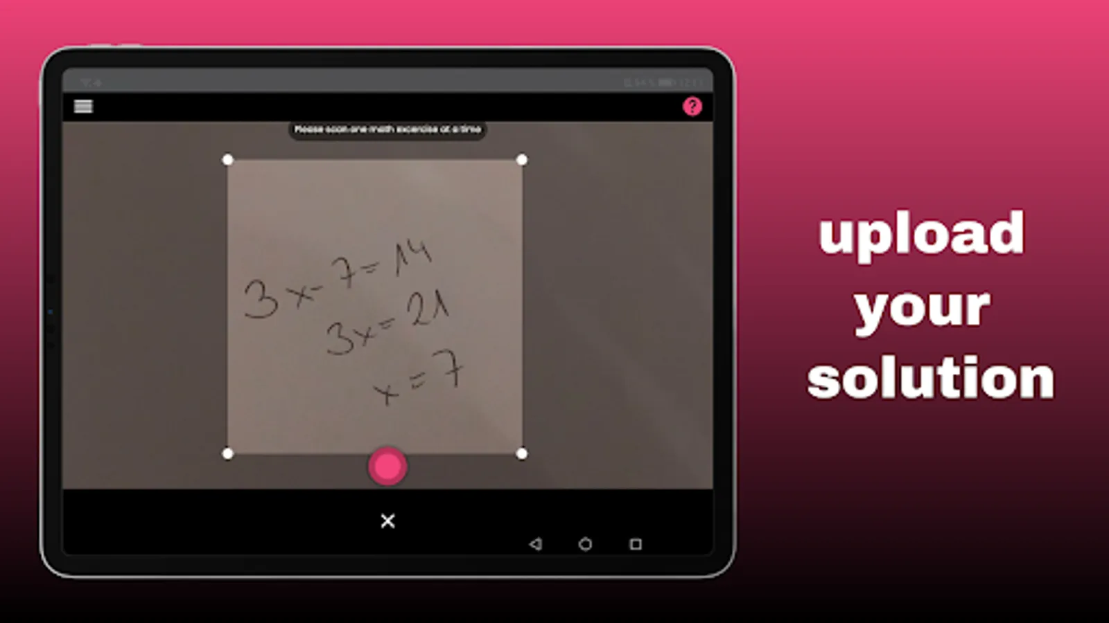Scan: Scan your solution paths with M.O., upload a picture from your gallery or directly from Google Drive.